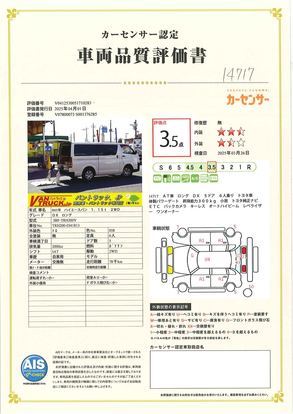 当店が把握できる車検証の表記より