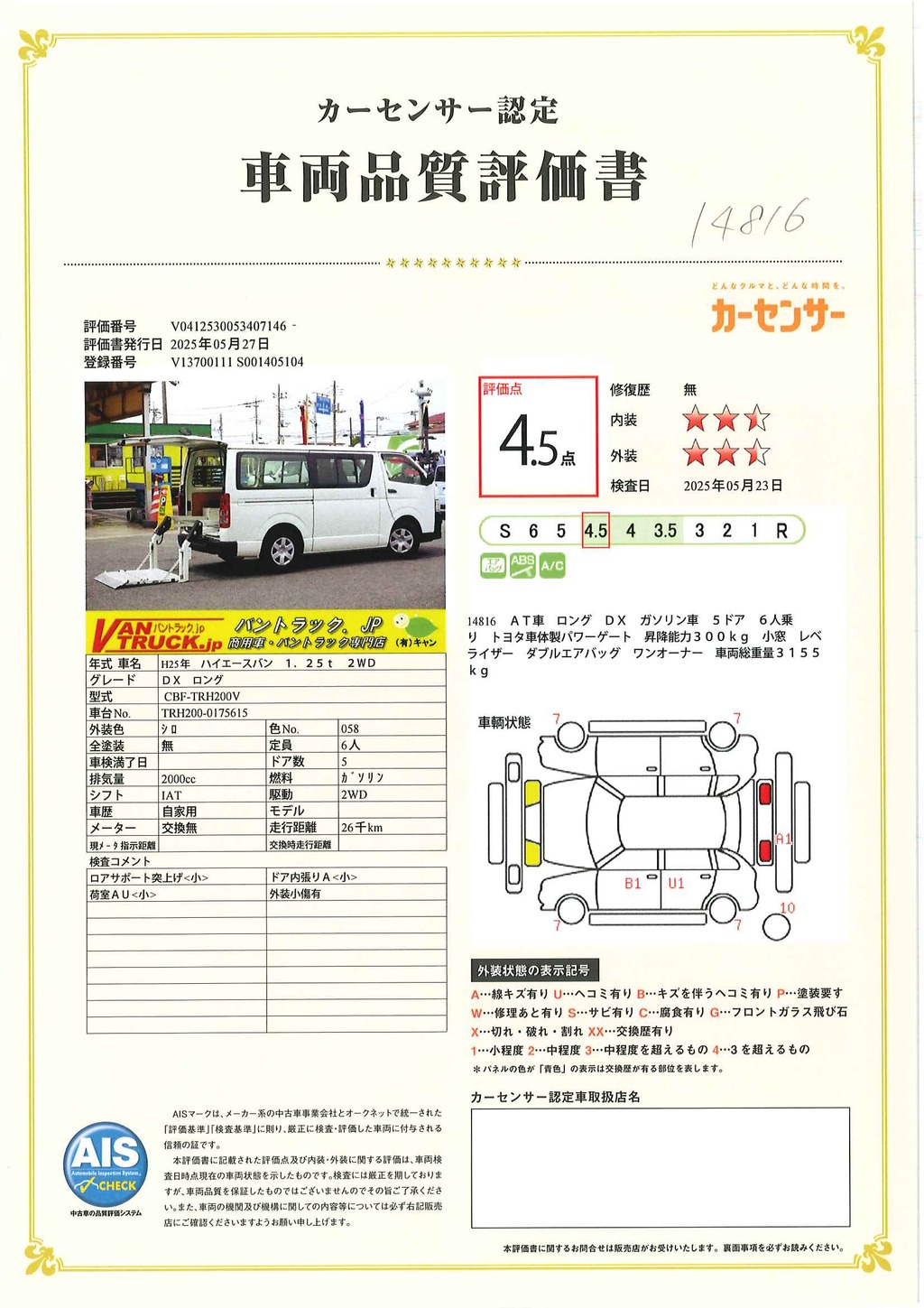 在庫No.C-0816 ハイエース ロング DX 5ドア ガソリン車 3~6人乗り トヨタ車体製パワーゲート 小窓 ワンオーナー!低走行!AT車!!