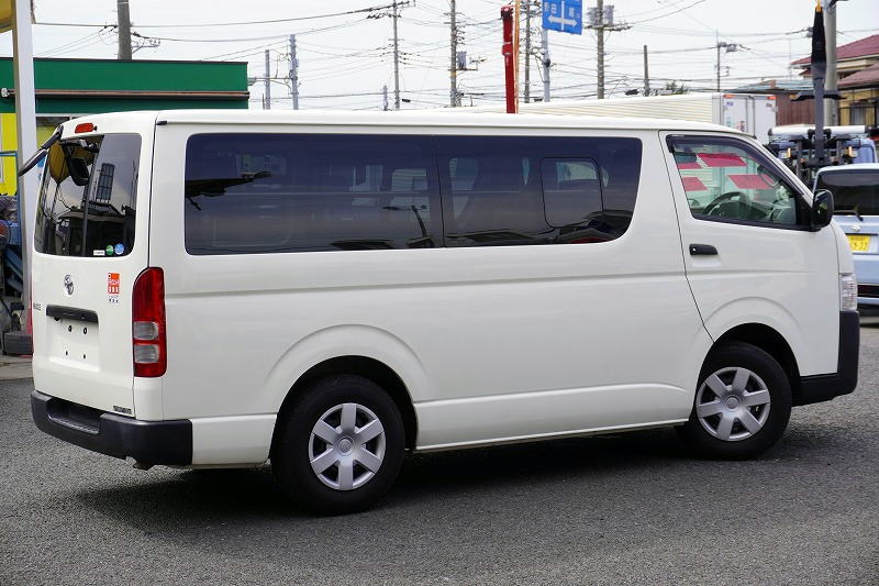 在庫No.K-0055 ハイエース ロング DX 4ドア ガソリン車 3人乗り トヨタ車体製パワーゲート 荷室加工有り 荷台板張り ラッシング1段 セパレーターカーテン 小窓 バックカメラ 社外ナビ ETC キーレス AT車!
