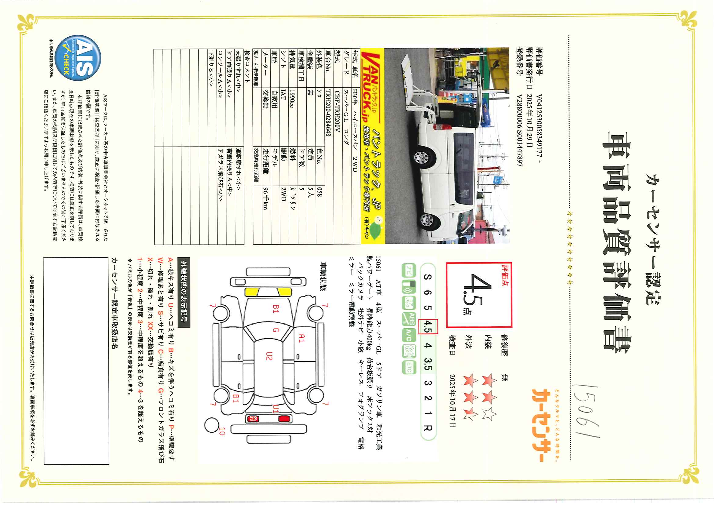 在庫No.K-0061 ハイエース ロング スーパーGL 5ドア ガソリン車 5人乗り 和光工業製パワーゲート 荷台板張り 床フック バックカメラ 社外ナビ ETC 小窓 電格ミラー イージークローザー オートエアコン ワンオーナー!AT車!