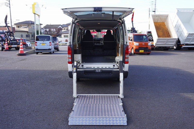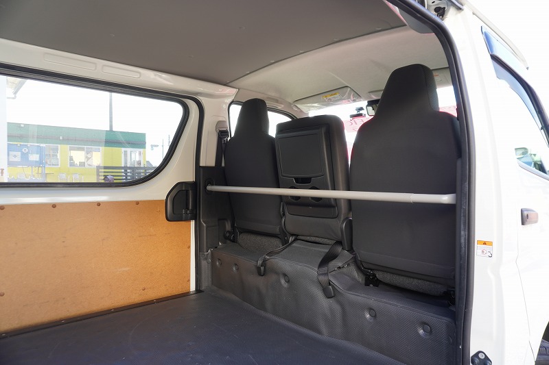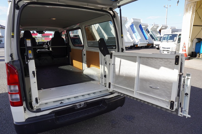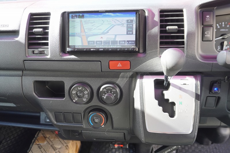 在庫No.K-0149 ハイエース ロング DX 5ドア ガソリン車 3人乗り トヨタ車体製パワーゲート 社外ナビ バックカメラ ETC キーレス AC100V 衝突軽減ブレーキ 車線逸脱警報 ワンオーナー!AT車!