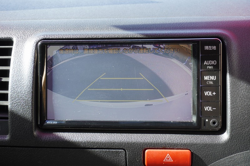 在庫No.K-0150 レジアスエース ロング DX 5ドア ガソリン車 3人乗り トヨタ車体製パワーゲート 荷台板張り 純正ナビ ワンセグTV バックカメラ ETC キーレス ワンオーナー!AT車!