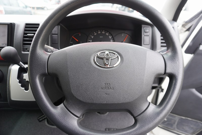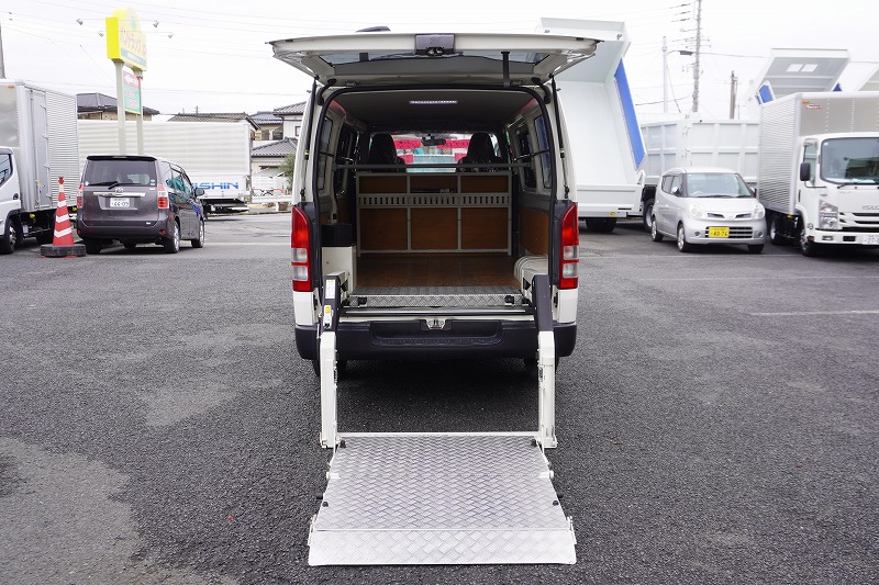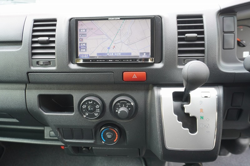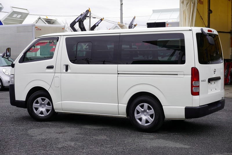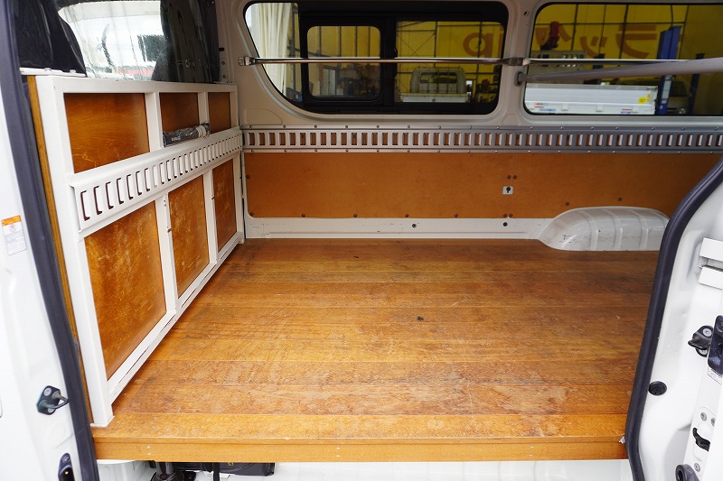 在庫No.K-0297 ハイエース ロング DX 4ドア ガソリン車 3人乗り トヨタ車体製パワーゲート 荷室加工有り 荷台板張り ラッシング1段 小窓 バックカメラ 社外ナビ ETC キーレス 低走行!AT車! AK