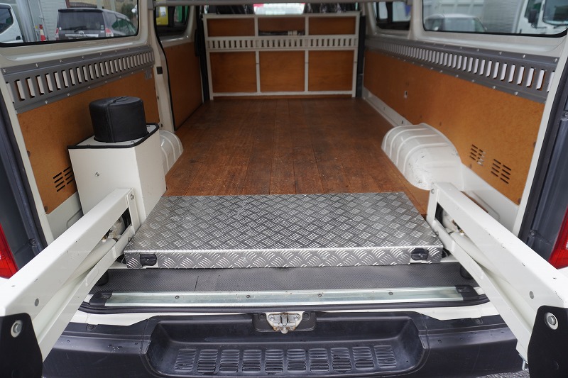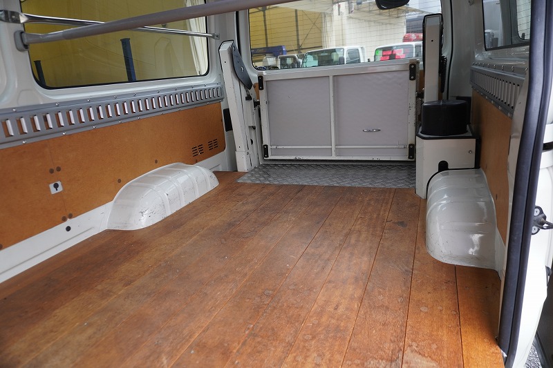ロング DX 4ドア ガソリン 3名 パワーリフト 荷室加工有 床板張り ラッシングレール1段 小窓 |