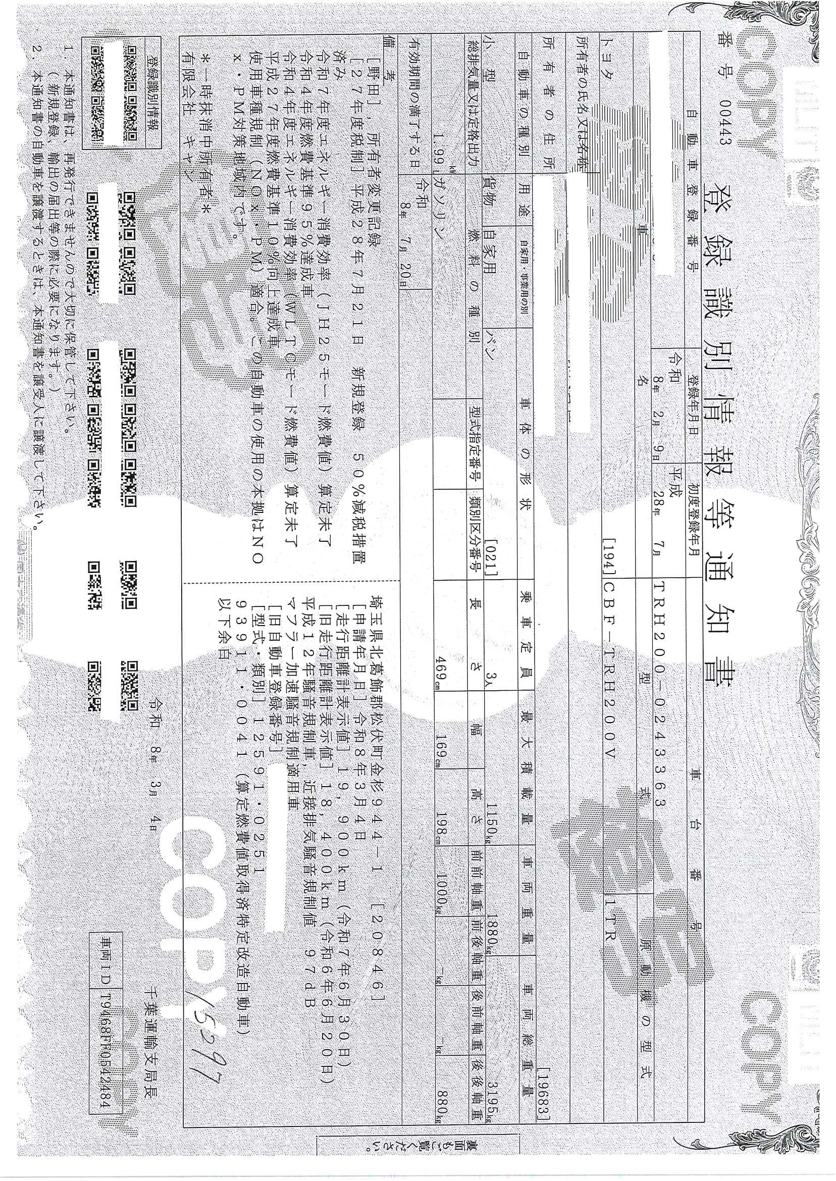 当店が把握できる車検証の表記より