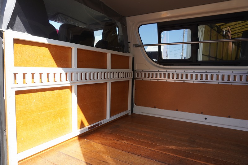 ロング DX 4ドア ガソリン 3名 パワーリフト 荷室加工有 床板張り ラッシングレール1段 小窓 |