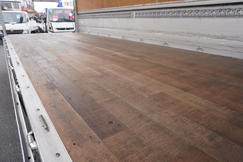 在庫No.K-0332 フォワード 4トン 「標準幅 ベッド付き」 アルミウイング 積載2750kg リーフサス 跳ね上げ式パワーゲート付き 6.2m長 ラッシング2段 導風板 バックカメラ ETC セイコーラック パブコ製 6速MT!