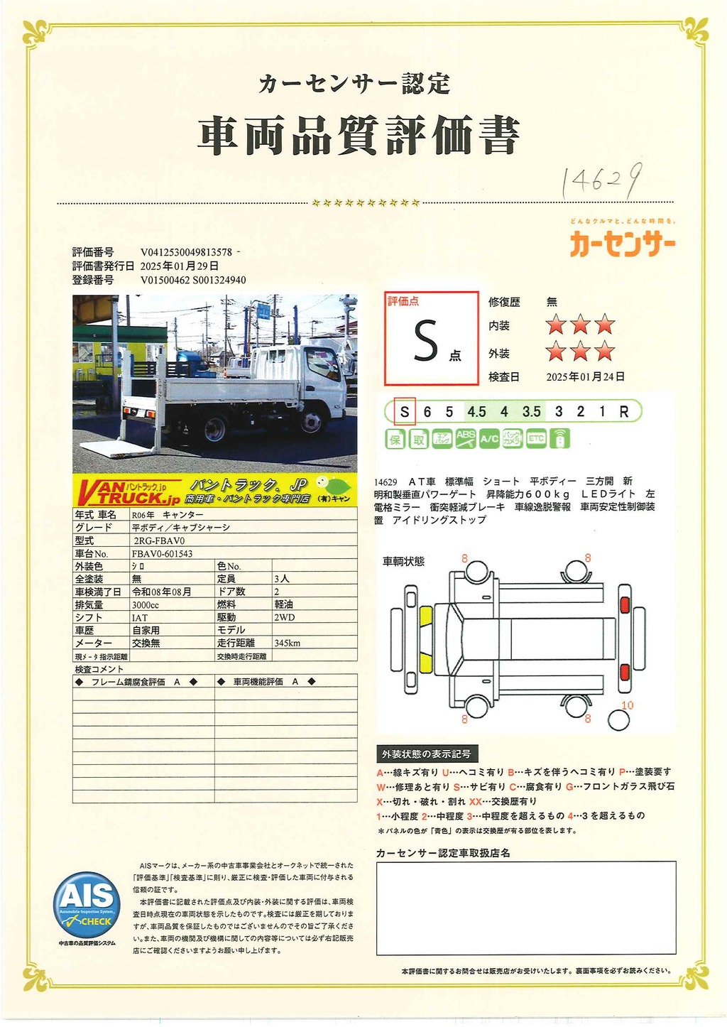 在庫No.C-0629 (未使用) キャンター 「標準幅 ショート」 平ボディー 垂直パワーゲート 積載2950kg 三方開 左電格ミラー バックカメラ ETC2.0 LEDヘッドライト&LEDフォグランプ 衝突軽減ブレーキ 車線逸脱警報 AT車! 車検「R8年12月まで!」
