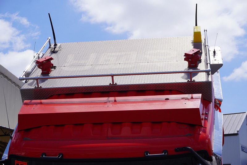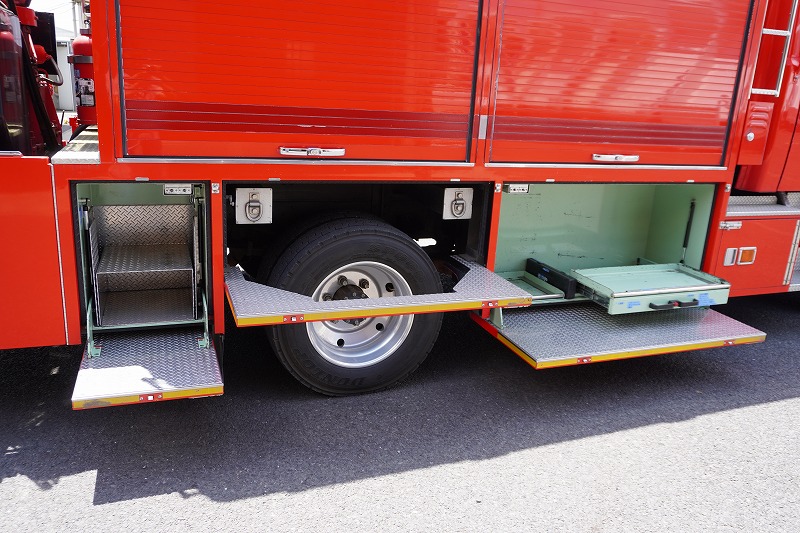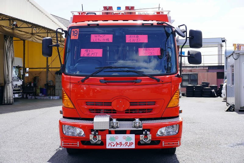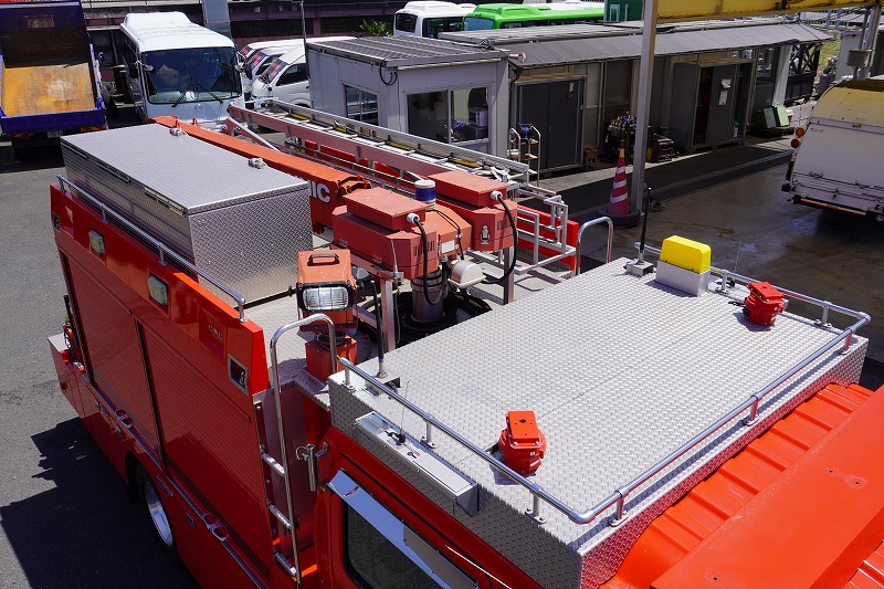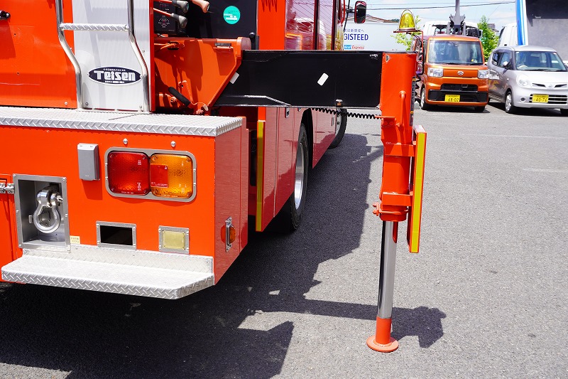 増t Wキャブ AWD 消防車 レスキュー仕様 3段ユニック リモコン無し ウインチ 照明装置 ピントルフック 牽引フック 上物上部縞板張り 格納ステップ |