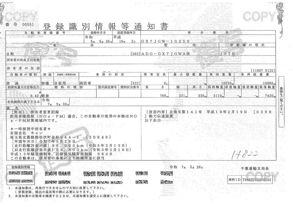 ※ウインチ、発電機、投光器、サイレン、マイク関係等ですが、動作未確認の