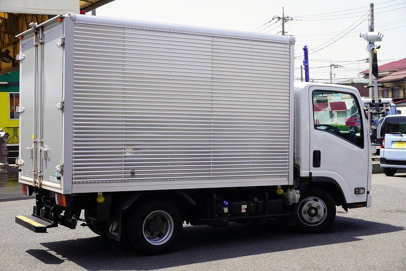 在庫No.C-0829 エルフ 10尺 アルミバン 積載2000kg ラッシング2段 バックカメラ 社外ナビ ETC 全高2.8m以下 90度ストッパー パブコ製 AT車!