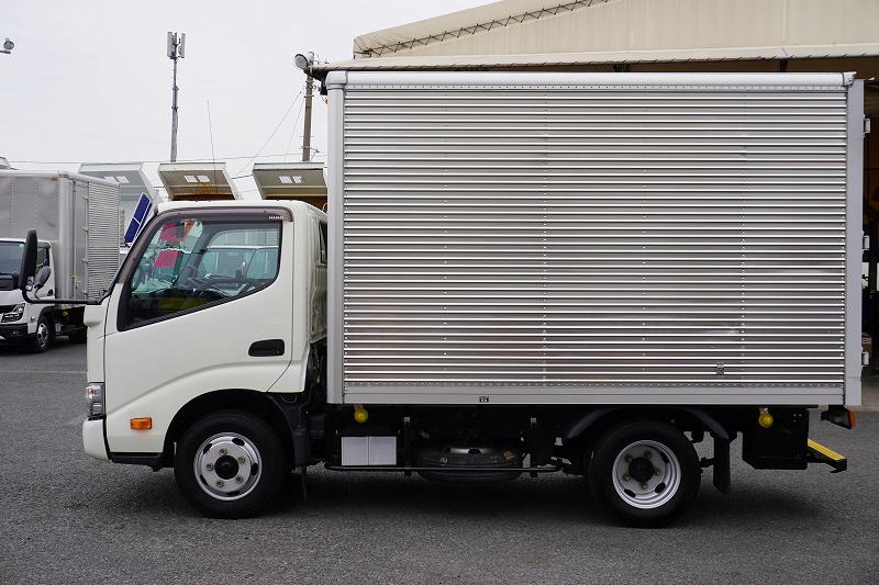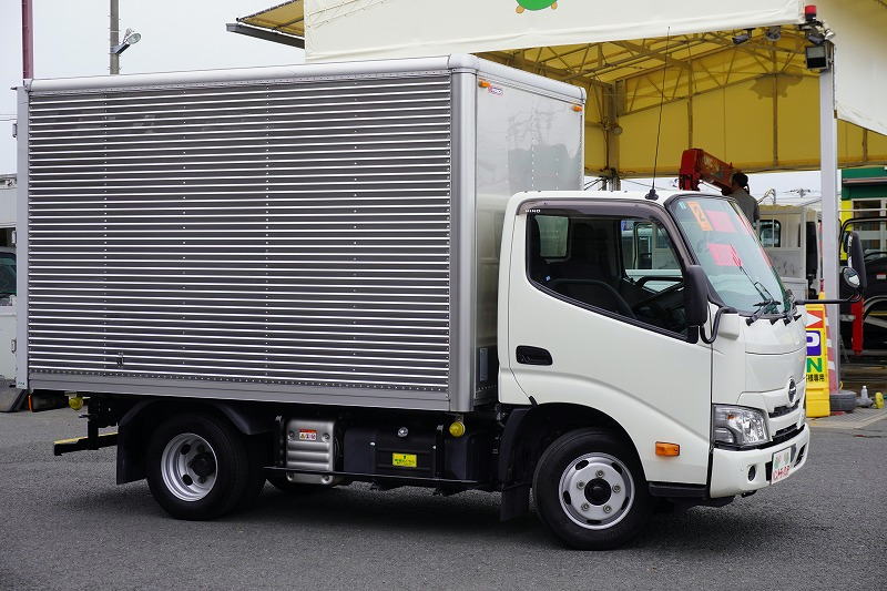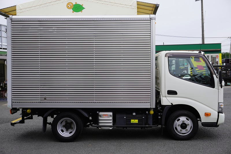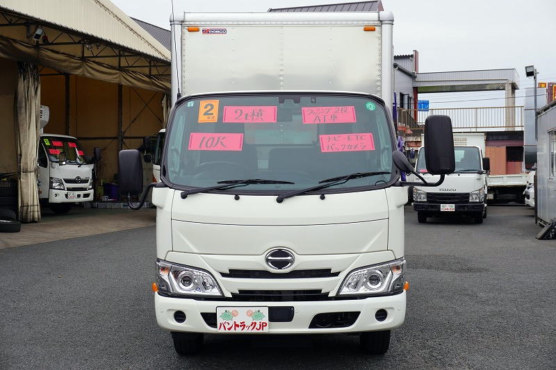 在庫No.C-0861 デュトロ 10尺 アルミバン 積載2000kg ラッシング2段 バックカメラ 社外ナビ ETC 左電格ミラー LEDヘッドライト 電動パーキングブレーキ クリアランスソナー 全高2.8m以下 90度ストッパー パブコ製 AT車! 車検「R8年3月まで!」