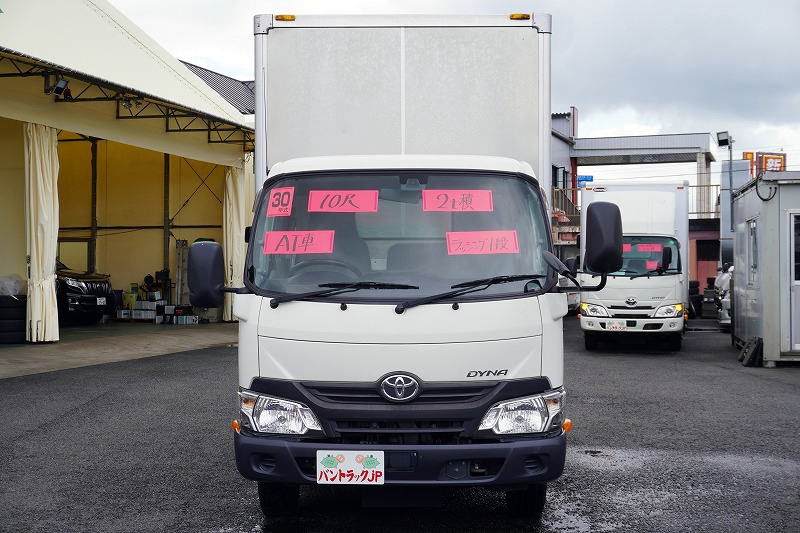 在庫No.C-0886 ダイナ 10尺 アルミバン 積載2000kg ラッシング1段 90度ストッパー 左電格ミラー 社外ナビ バックカメラ ETC 衝突軽減ブレーキ 車線逸脱警報 内高2.15m トヨタ車体製 ワンオーナー!AT車!