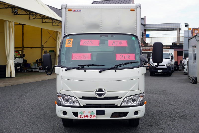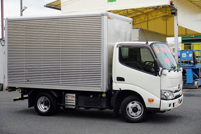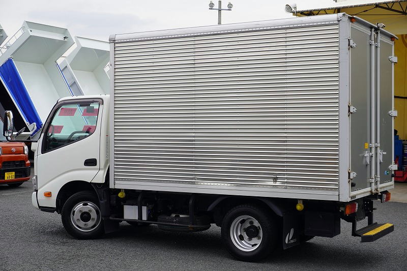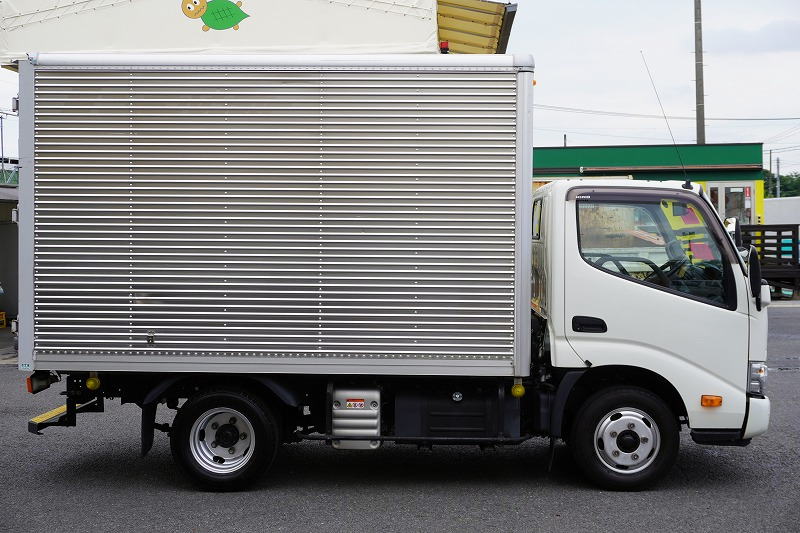 在庫No.C-0888 デュトロ 10尺 アルミバン 積載2000kg ラッシング2段 バックカメラ 社外ナビ ETC 左電格ミラー LEDヘッドライト 電動パーキングブレーキ クリアランスソナー 全高2.8m以下 90度ストッパー パブコ製 AT車! 車検「R8年3月まで!」