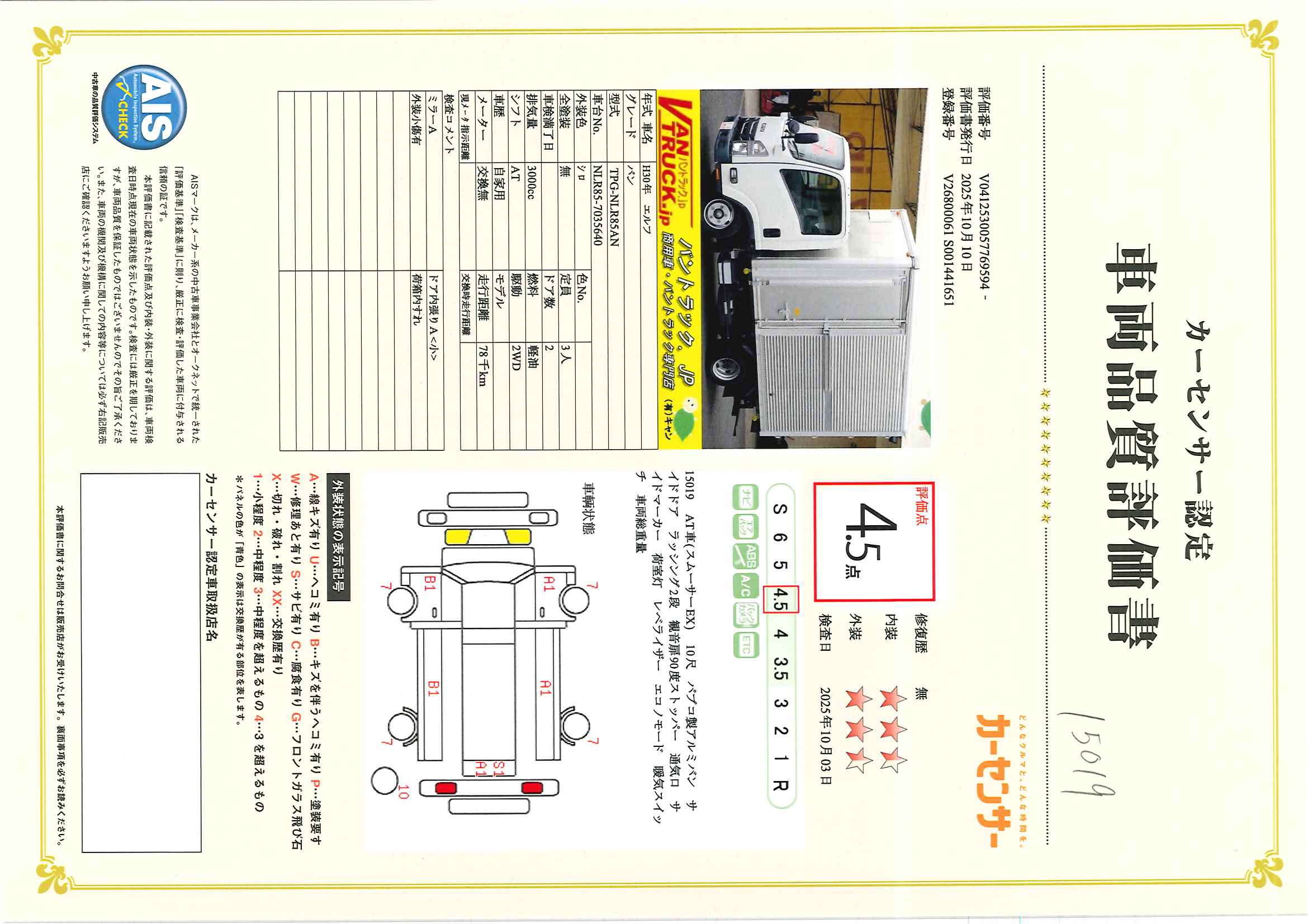 在庫No.K-0019 エルフ 10尺 アルミバン 積載2000kg サイドドア 高箱 ラッシング2段 バックカメラ ETC 90度ストッパー 通気口 内高約2.2m パブコ製 AT車!