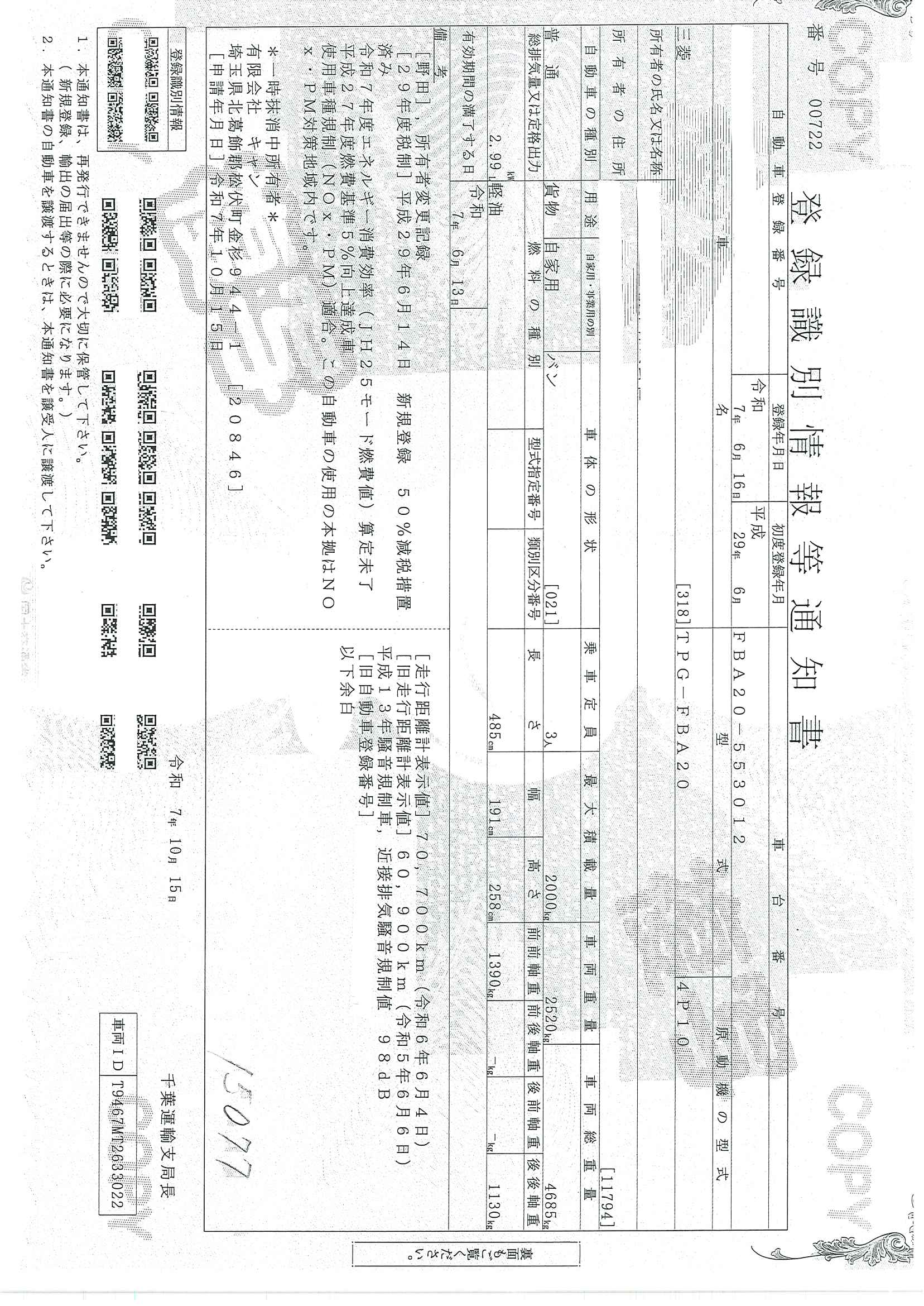 当店が把握できる車検証の表記より