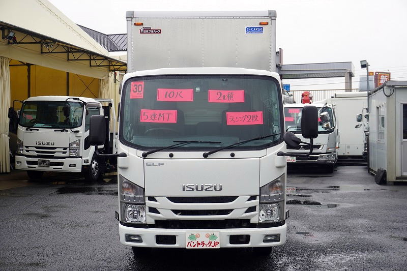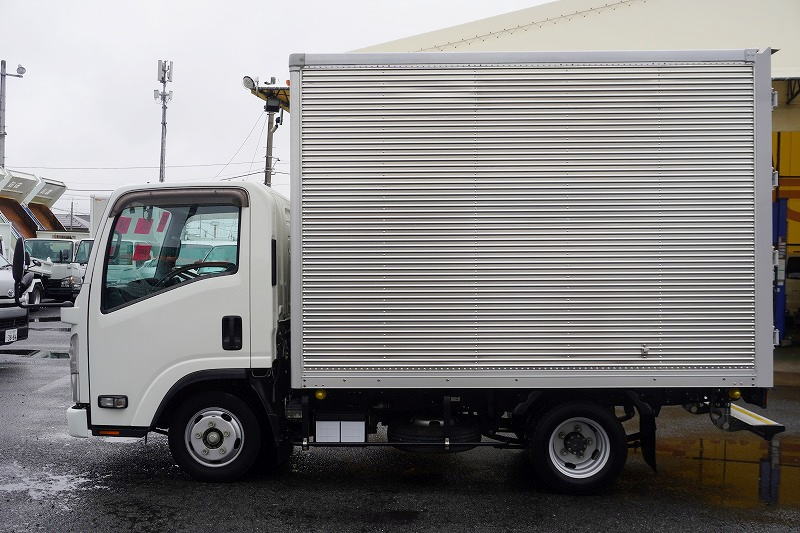 在庫No.K-0094 エルフ 10尺 アルミバン 積載2000kg ラッシング2段 左電格ミラー 坂道発進補助 バックカメラ ETC2.0 90度ストッパー フォグランプ 全低床 日本フルハーフ製 5速MT!