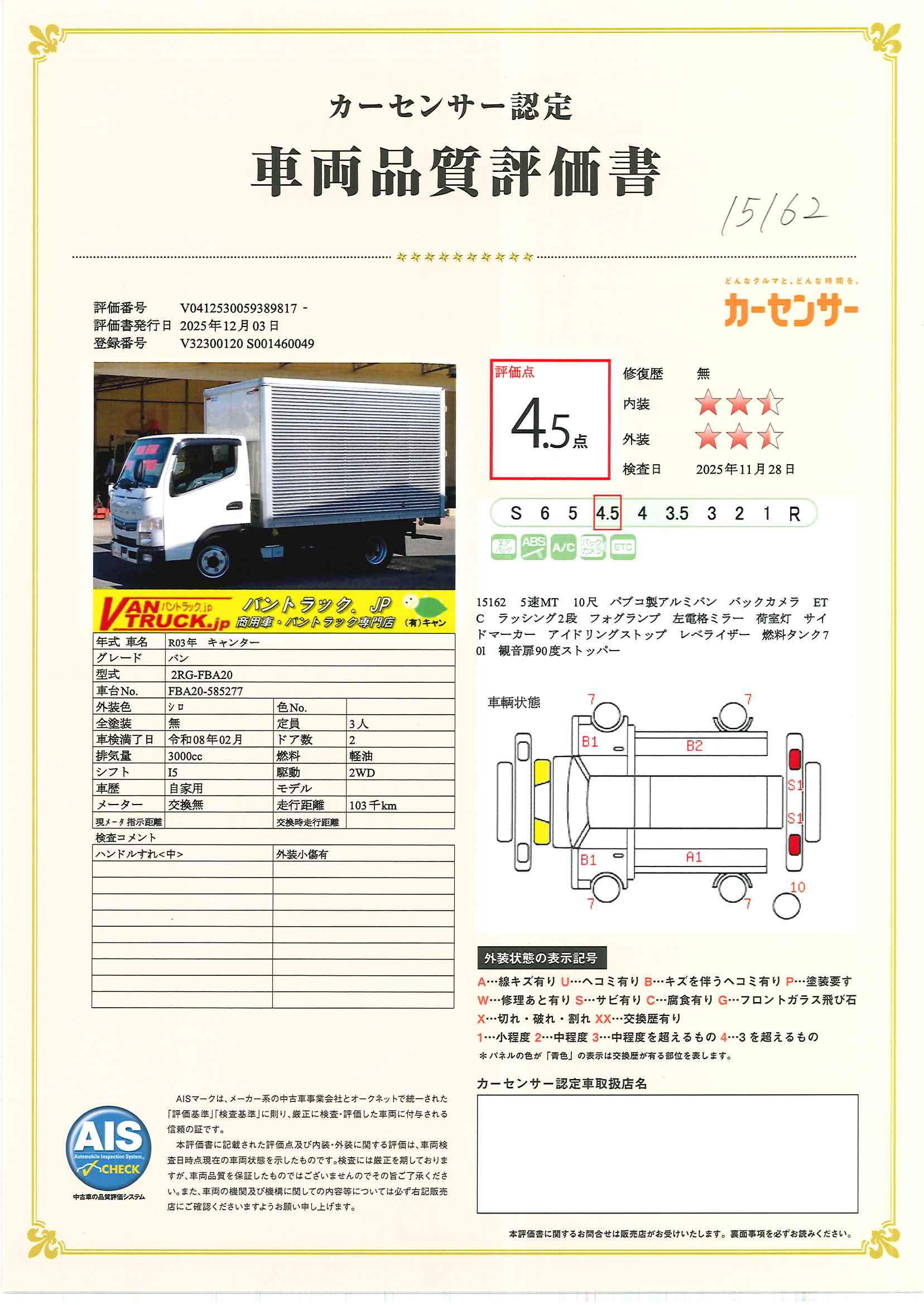 在庫No.K-0162 キャンター 10尺 アルミバン 積載2000kg ラッシング2段 バックカメラ ETC 左電格ミラー フォグランプ 90度ストッパー 全高2.8m以下 衝突軽減ブレーキ 車線逸脱警報 パブコ製 5速MT! 車検「R8年2月まで!」