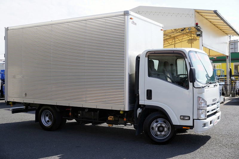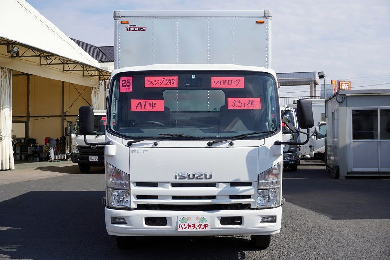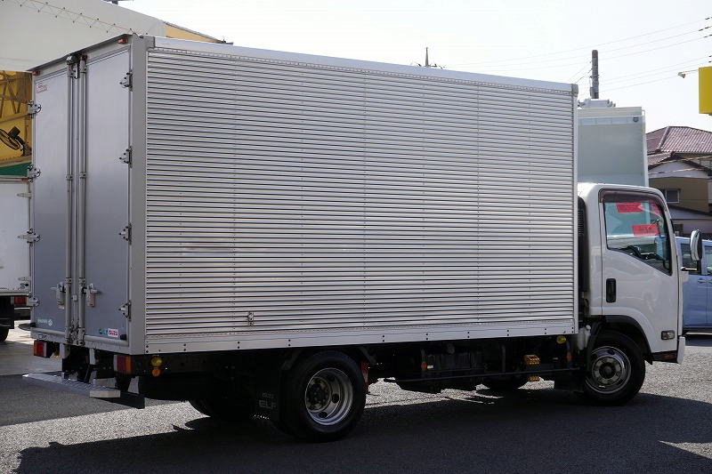 在庫No.K-0339 エルフ 「ワイドロング」 アルミバン 積載3500kg サイドドア ラッシング2段 バックカメラ 左電格ミラー フォグランプ 日本フルハーフ製 AT車! 車検「R9年1月まで!」