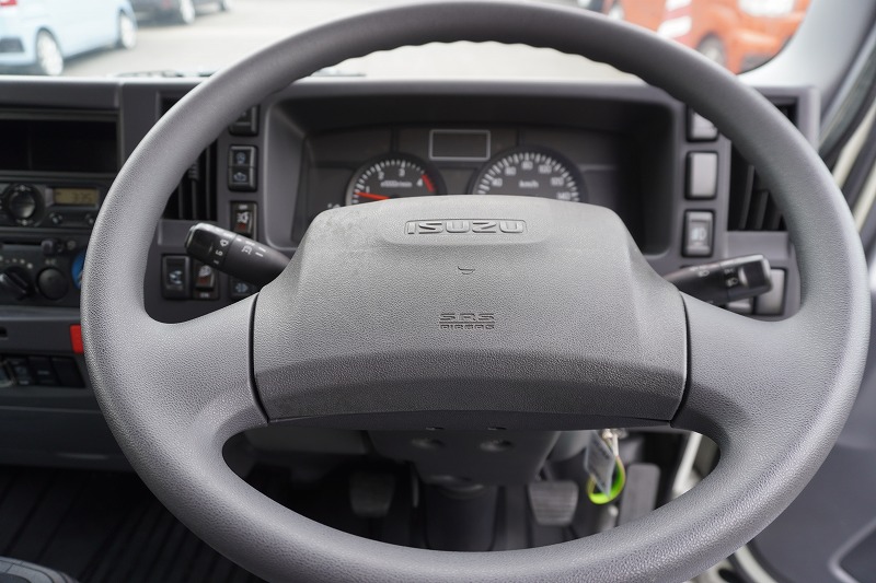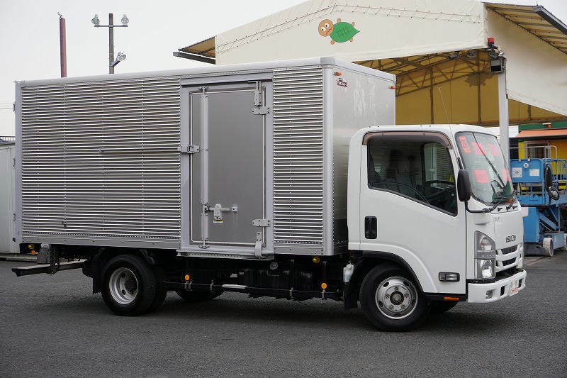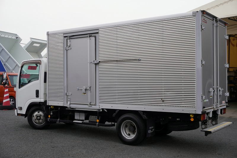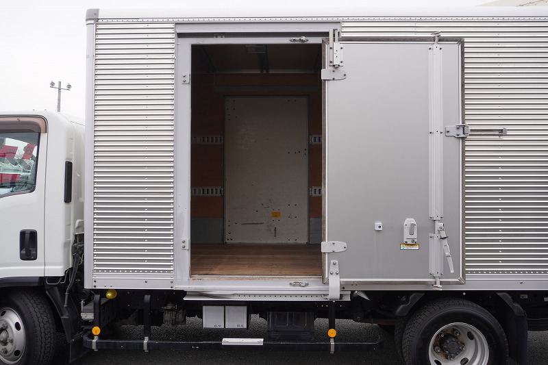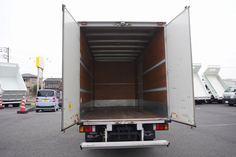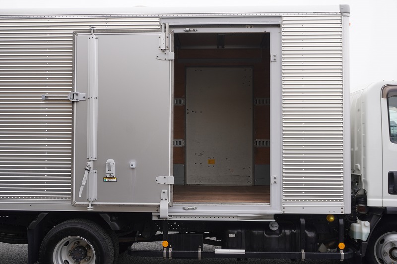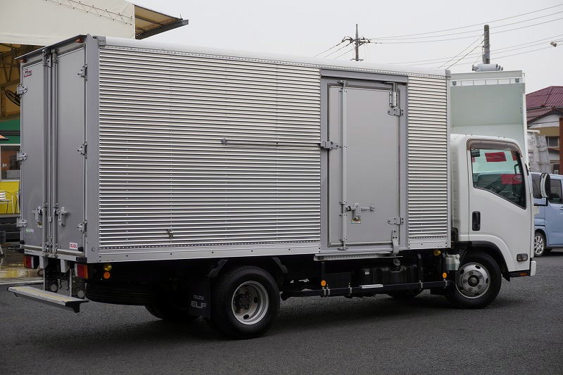 在庫No.K-0340 エルフ 「標準幅 ロング」 アルミバン 積載3000kg 左右サイドドア ラッシング2段 バックカメラ ETC2.0 左電格ミラー 坂道発進補助 フォグランプ キーレス 90度ストッパー 日本フルハーフ製 6速MT!