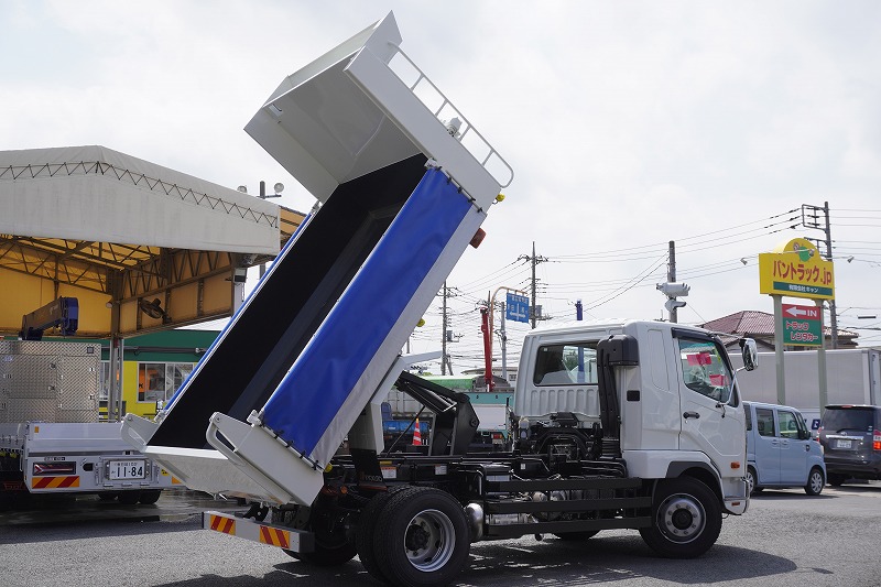 高機能パッケージ 増t 寝台付き 土砂ダンプ 1方開 7.6トン積 自動シート 鳥居シートキャリア ハシゴ 舟底 未使用 |