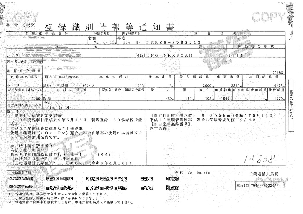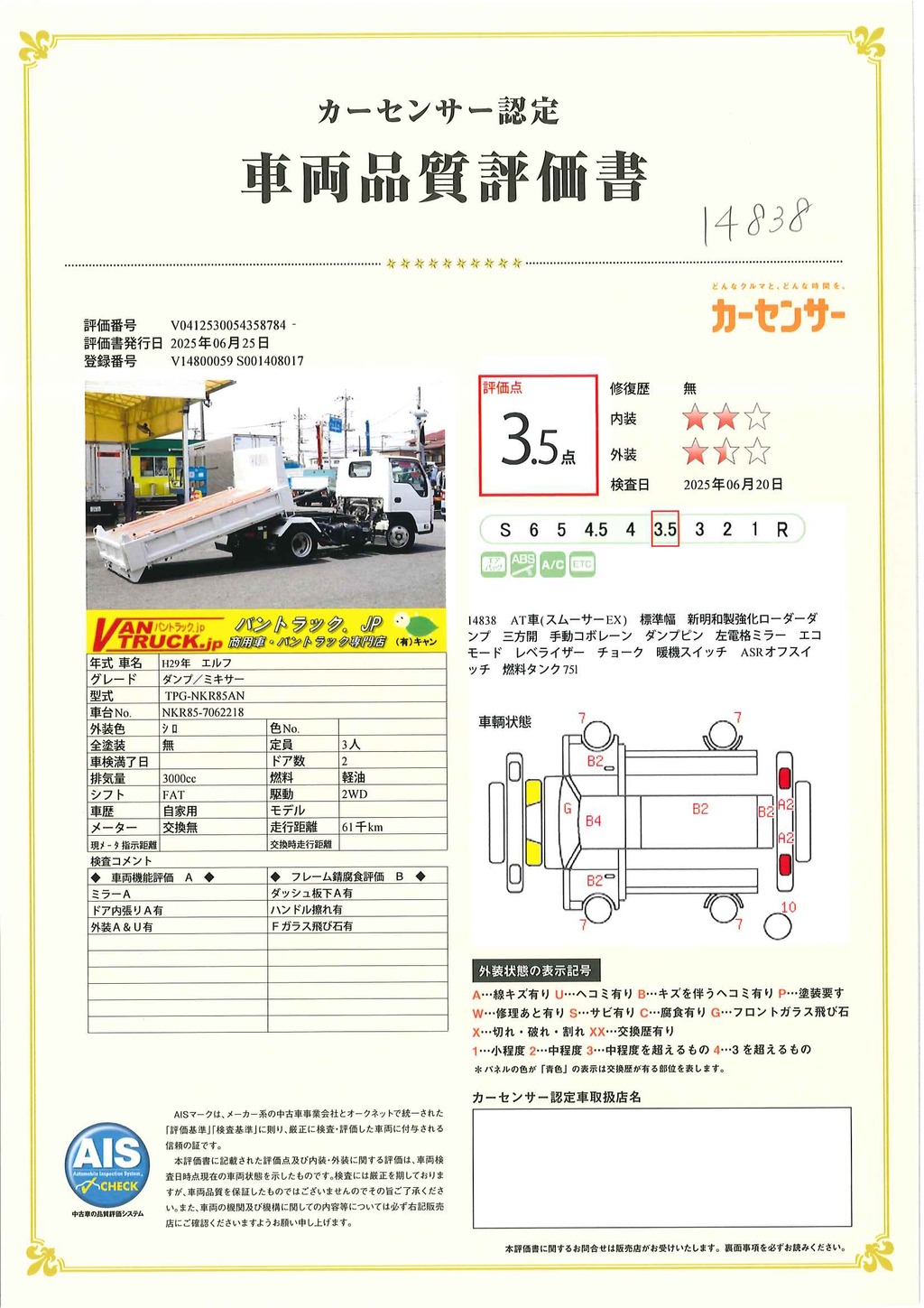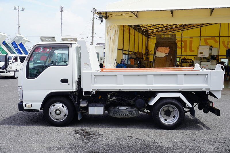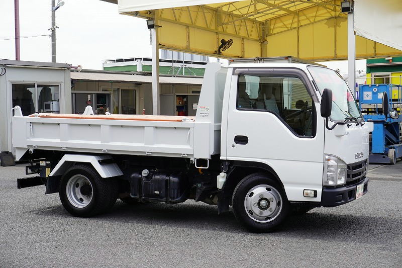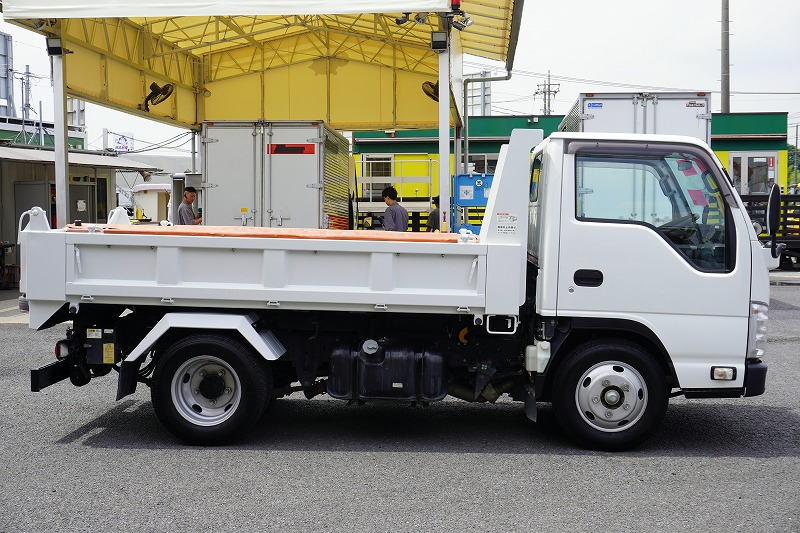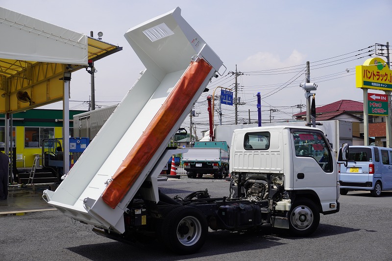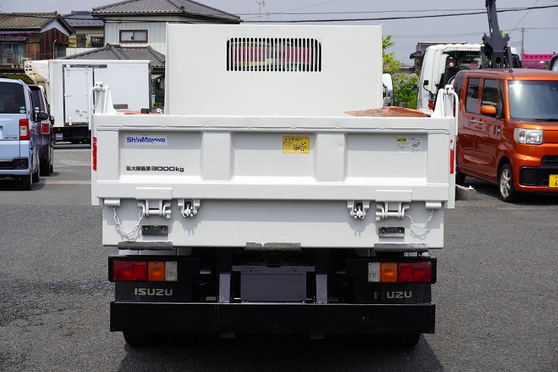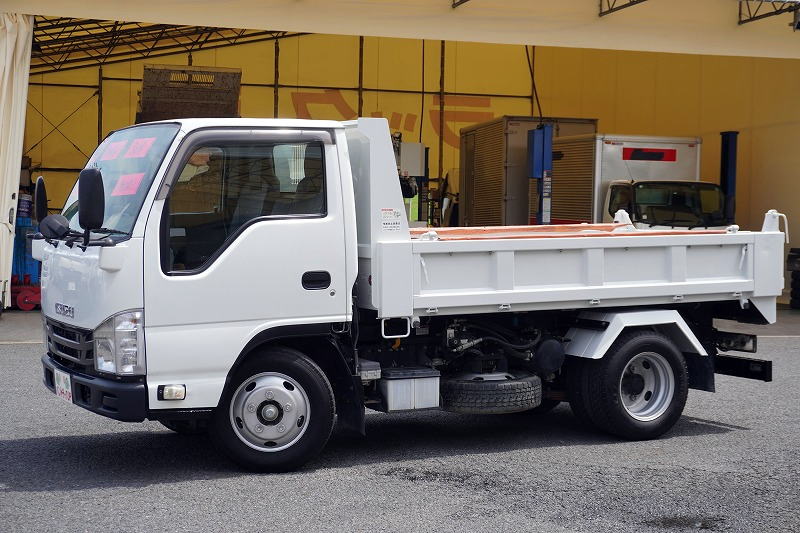 在庫No.C-0838 エルフ 「標準幅」 強化 ローダーダンプ 新明和製 三方開 積載3000kg 手動コボレーン ダンプピン ETC 左電格ミラー AT車!