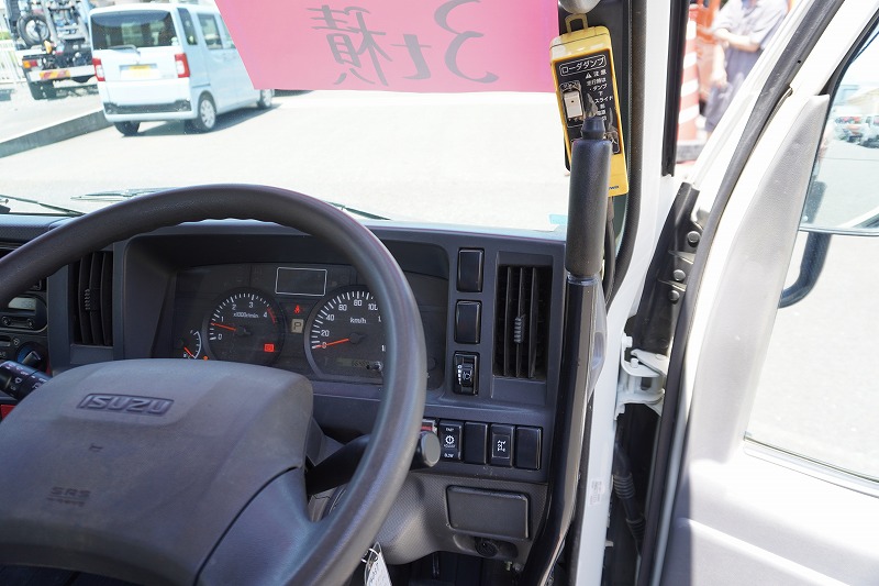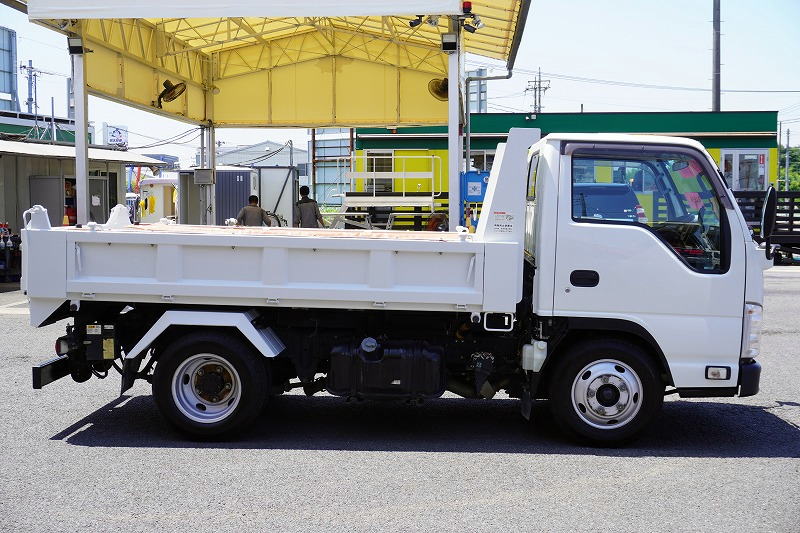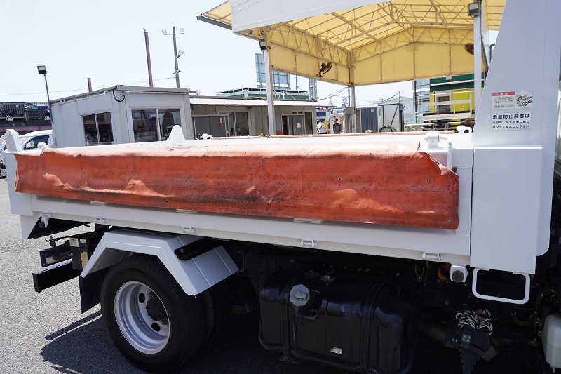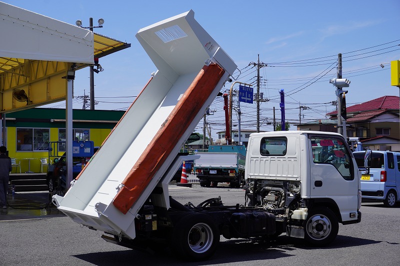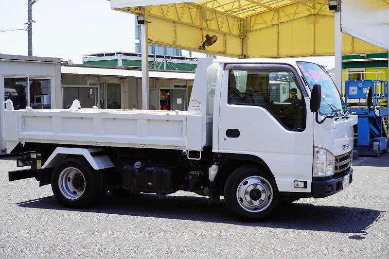 在庫No.C-0837 エルフ 「標準幅」 強化 ローダーダンプ 新明和製 三方開 積載3000kg 手動コボレーン ダンプピン ETC 左電格ミラー AT車!
