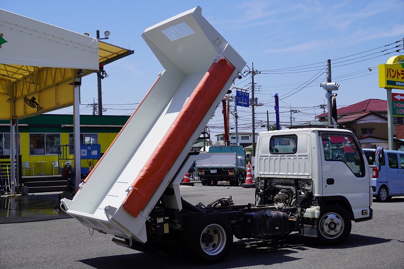 在庫No.C-0839 エルフ 「標準幅」 強化 ローダーダンプ 新明和製 三方開 積載3000kg 手動コボレーン ダンプピン ETC 6速MT!