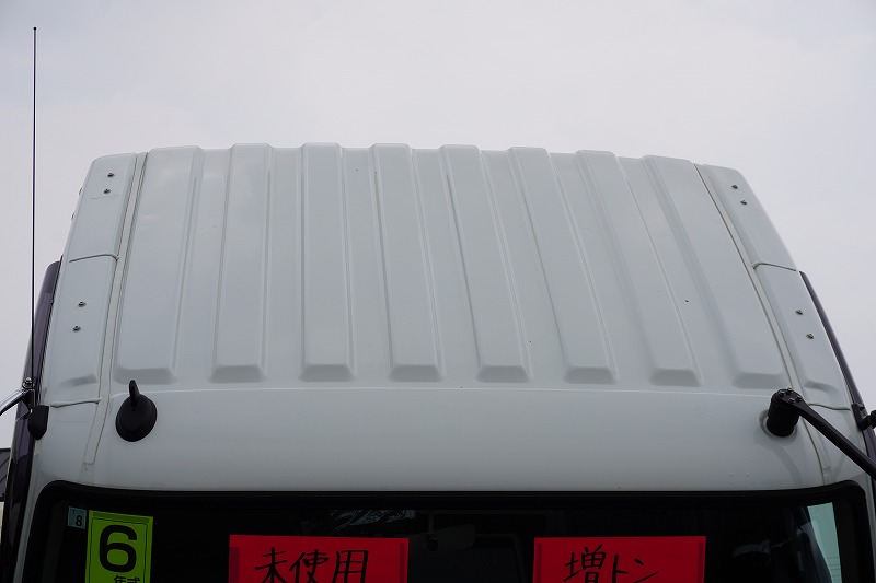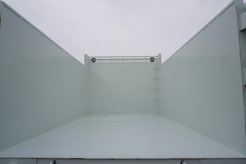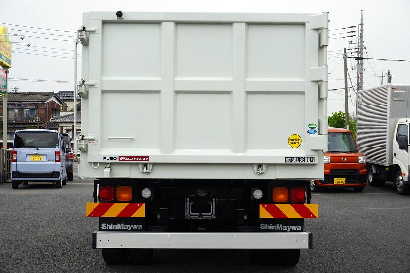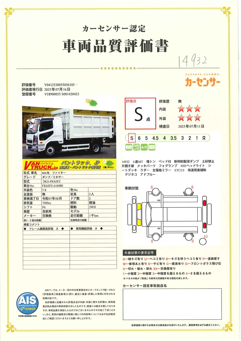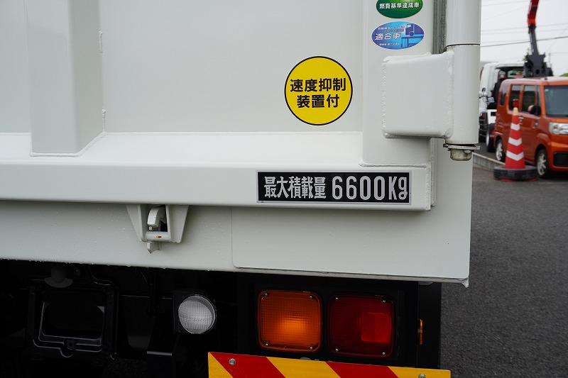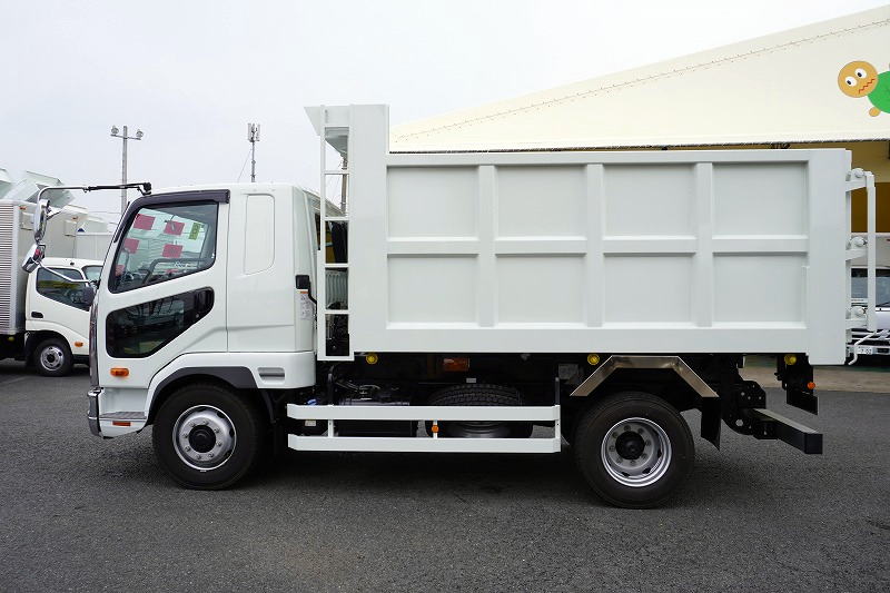 在庫No.C-0932 (未使用) ファイター 増トン 「ベッド付き 土砂禁止」 深ダンプ 新明和製 一方開 積載6600kg リア片開き扉 鳥居シートデッキ&ラダー 坂道発進補助 ETC2.0 衝突軽減ブレーキ 車線逸脱警報 オートエアコン メッキパーツ 6速MT!