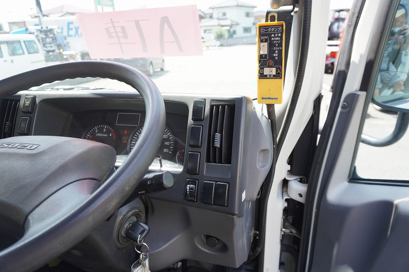 在庫No.C-0971 エルフ 「ワイド」 強化 ローダーダンプ 新明和製 一方開 積載3800kg ETC ダンプピン AT車!