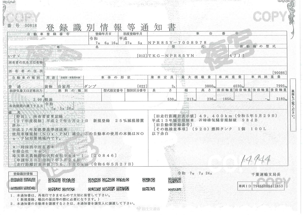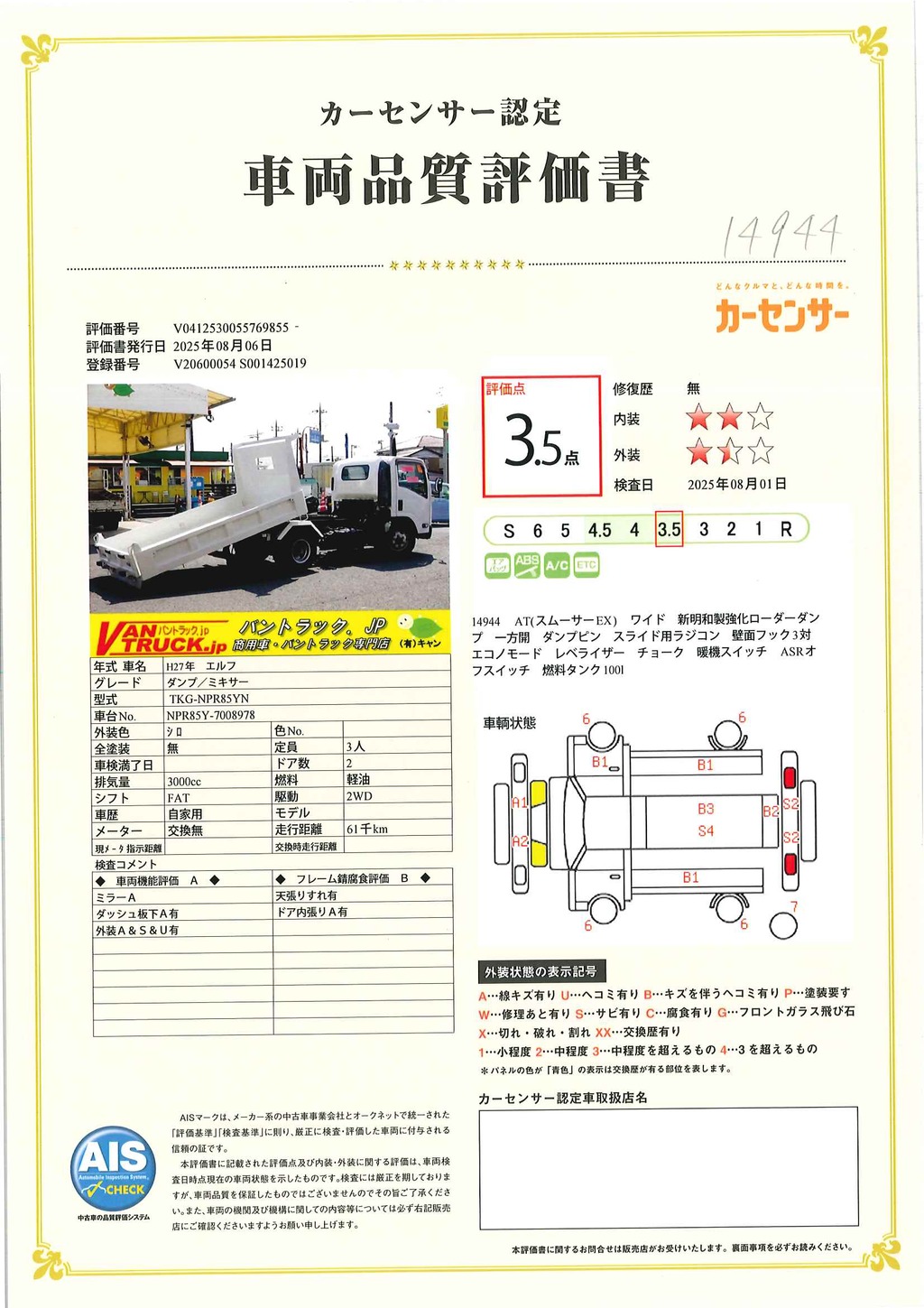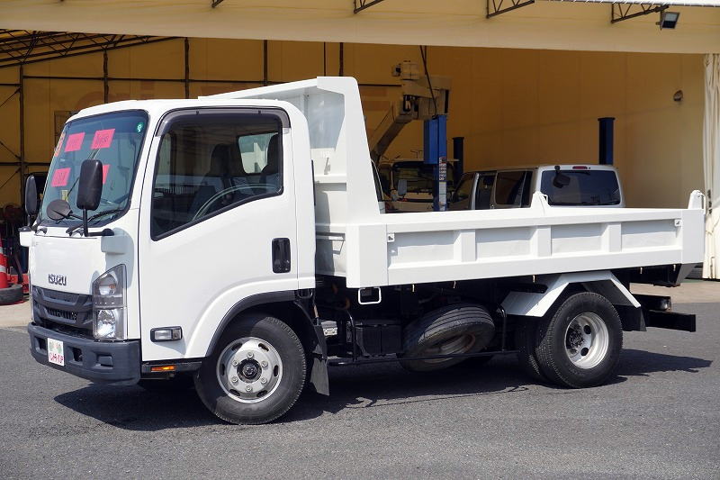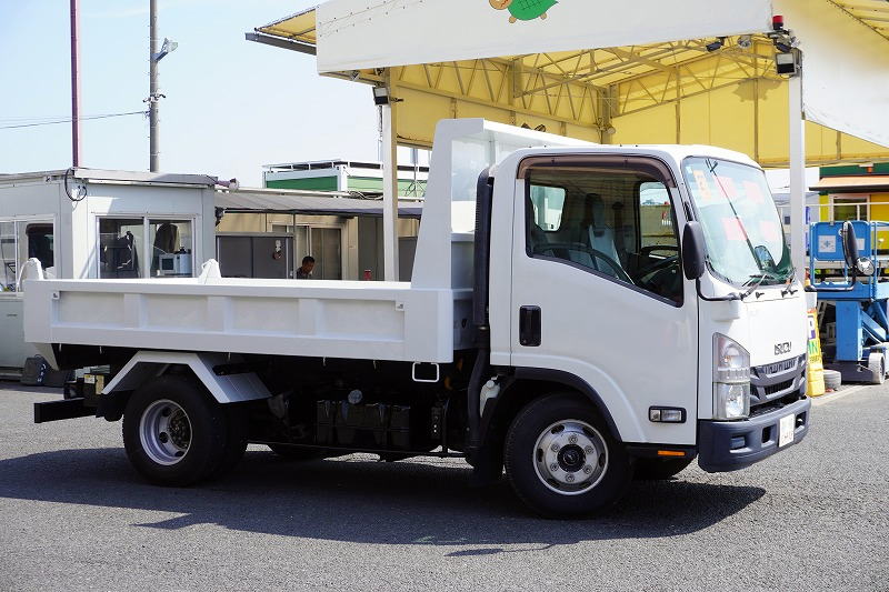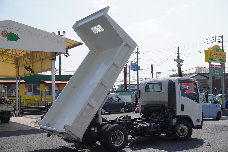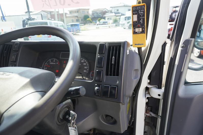 在庫No.C-0944 エルフ 「ワイド」 強化 ローダーダンプ 新明和製 一方開 積載3800kg スライド用ラジコン ETC ダンプピン AT車!