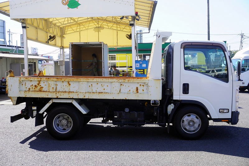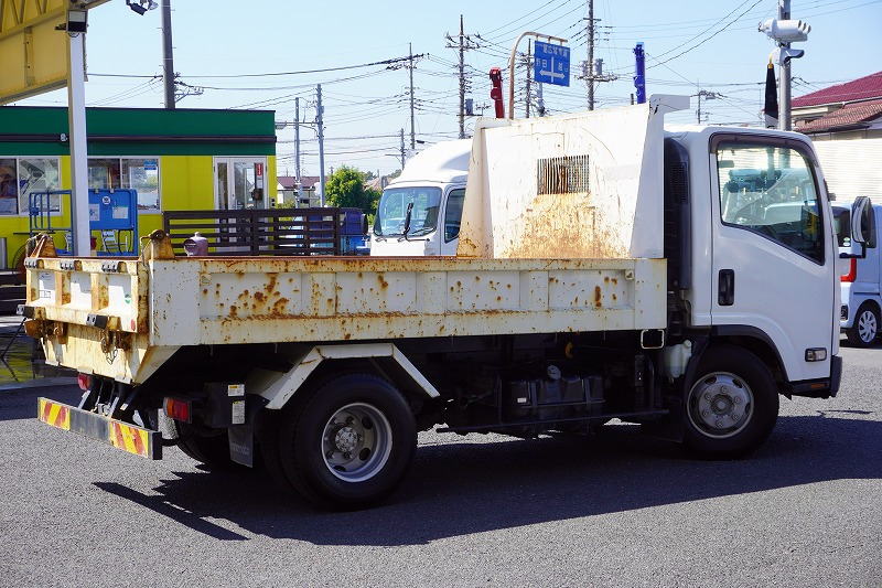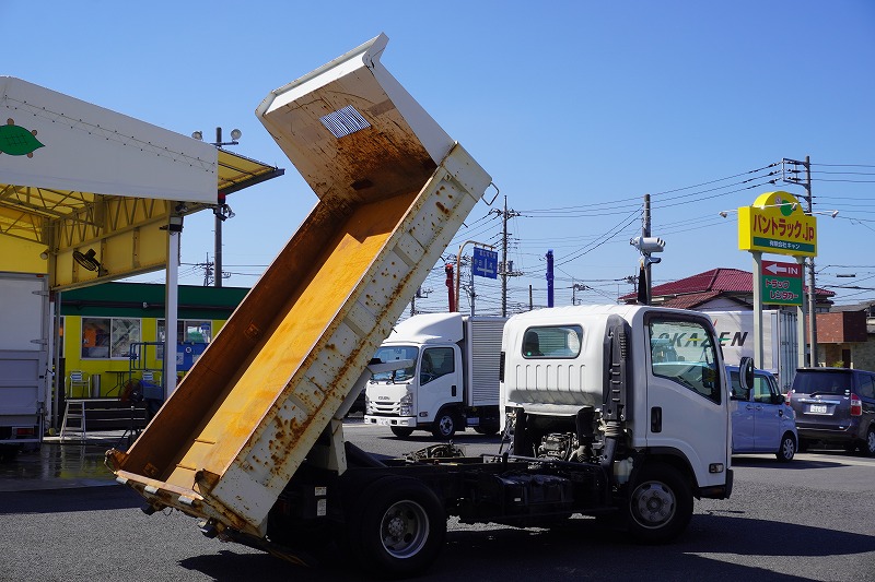 在庫No.K-0027 エルフ 「ワイド」 強化 ローダーダンプ 新明和製 一方開 積載3750kg ETC ダンプピン 壁面フック3対 キーレス AT車!