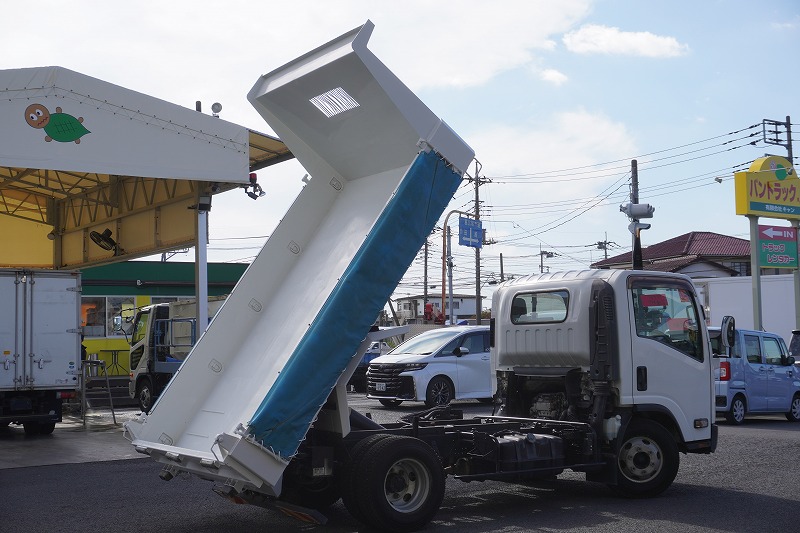 在庫No.K-0039 エルフ 「ワイド」 強化 ローダーダンプ 新明和製 一方開 積載3800kg 手動コボレーン ETC ダンプピン 壁面フック5対 坂道発進補助 キーレス 6速MT!