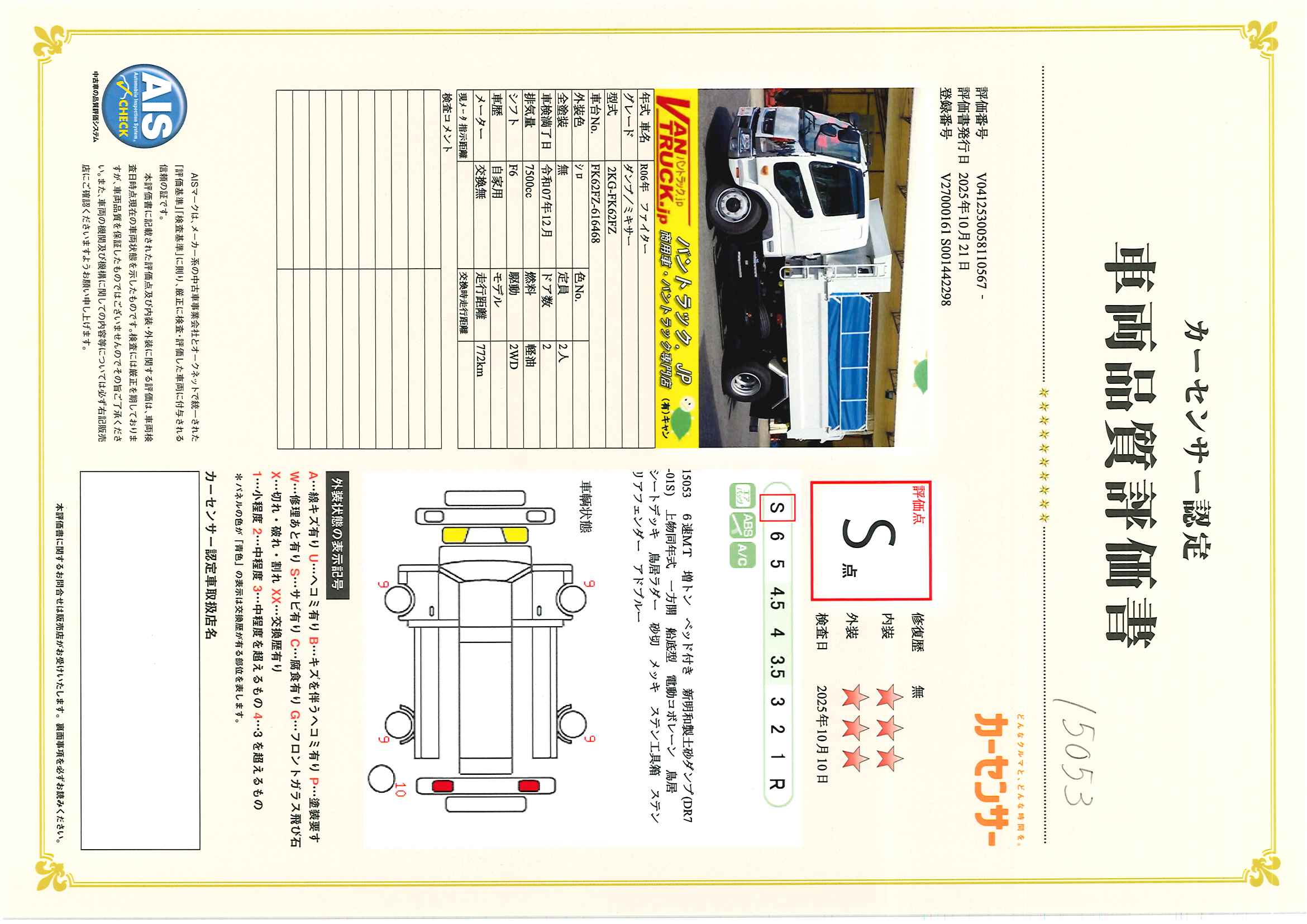在庫No.K-0053 (未使用) ファイター 増トン 「ベッド付き」 土砂ダンプ 新明和製 一方開 積載7300kg 電動コボレーン 船底型 鳥居シートデッキ&ラダー 砂切 メッキパーツ HIDヘッドライト 坂道発進補助 衝突軽減ブレーキ 車線逸脱警報 6速MT! 車検「R7年12月まで!」