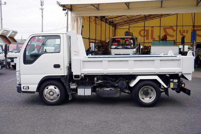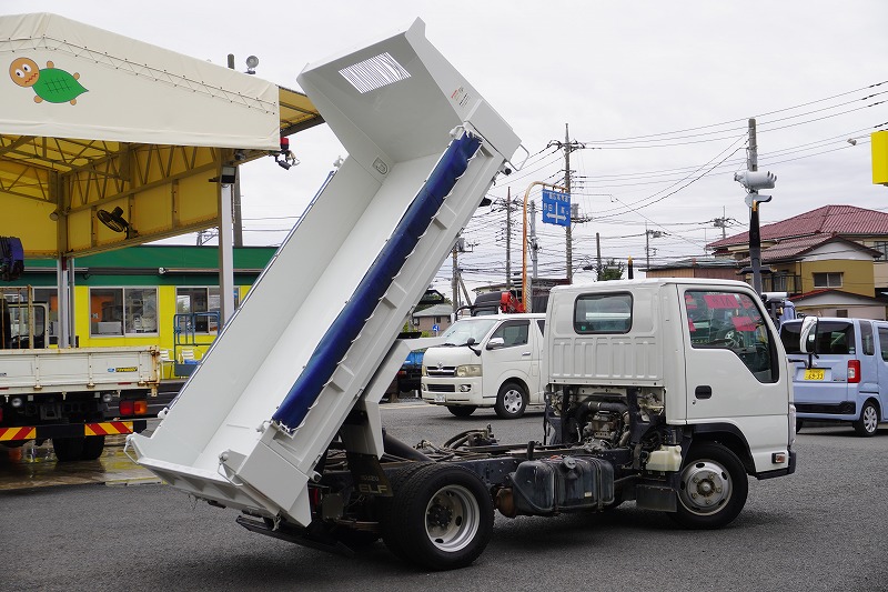 在庫No.K-0075 エルフ 「標準幅」 強化 ローダーダンプ 新明和製 三方開 積載3000kg 手動コボレーン ダンプピン 壁面フック1対 ETC AT車!