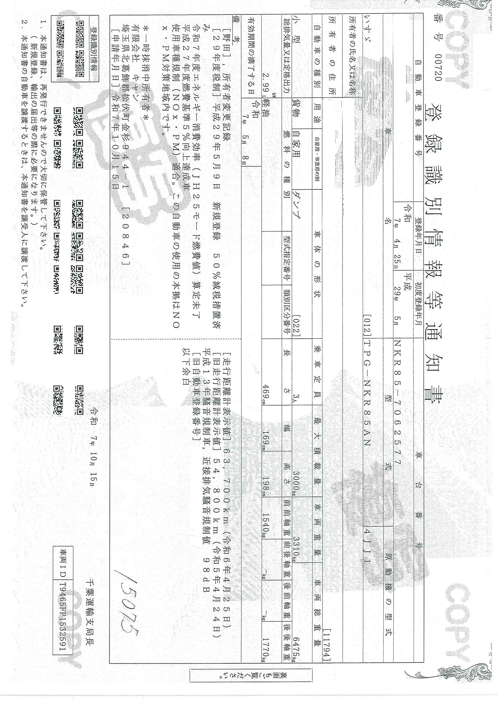 当店が把握できる車検証の表記より