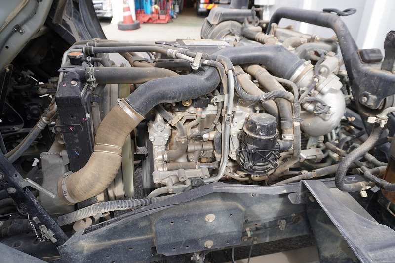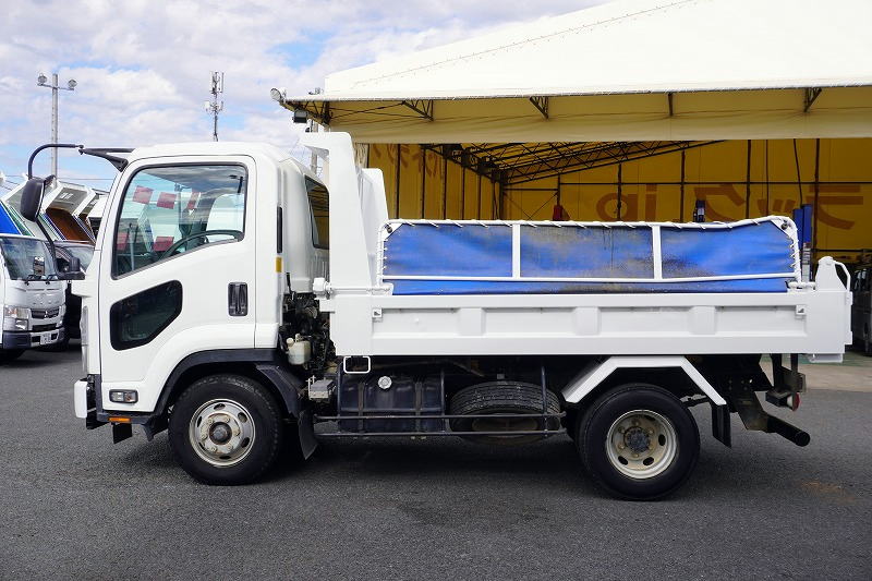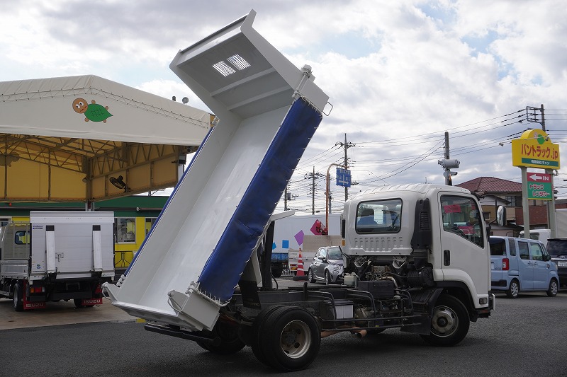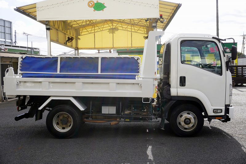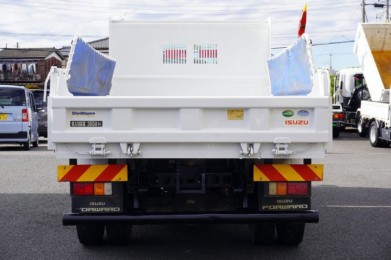在庫No.K-0081 フォワード 4トン 「ベッドレス」 強化ダンプ 一方開 新明和製 積載3650kg 電動コボレーン 鳥居アングル補強 ダンプピン 社外リアバンパー ETC 6速MT!
