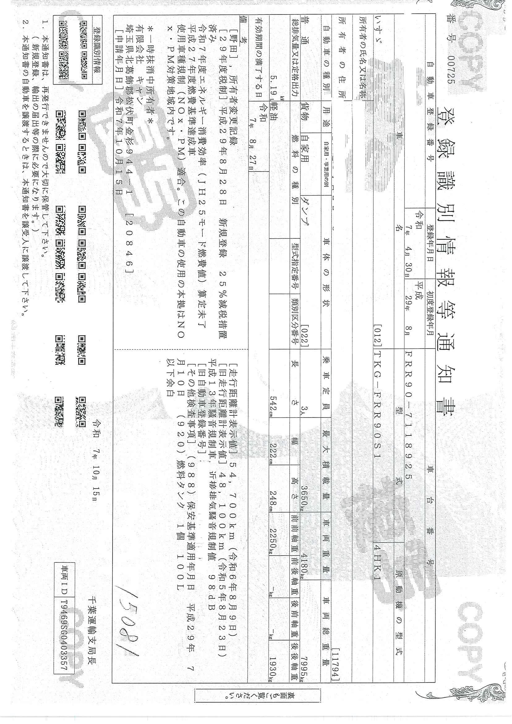 当店が把握できる車検証の表記より