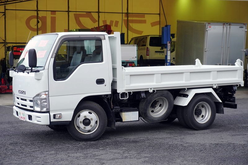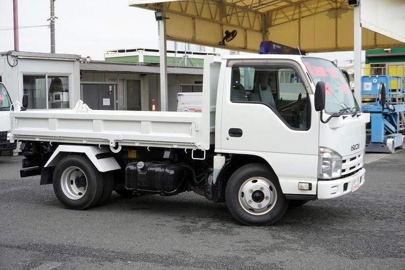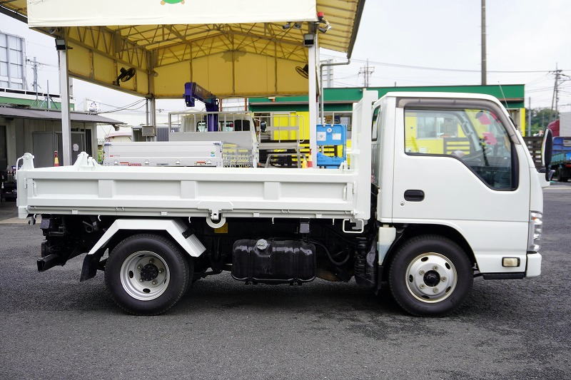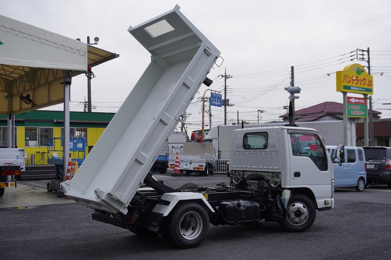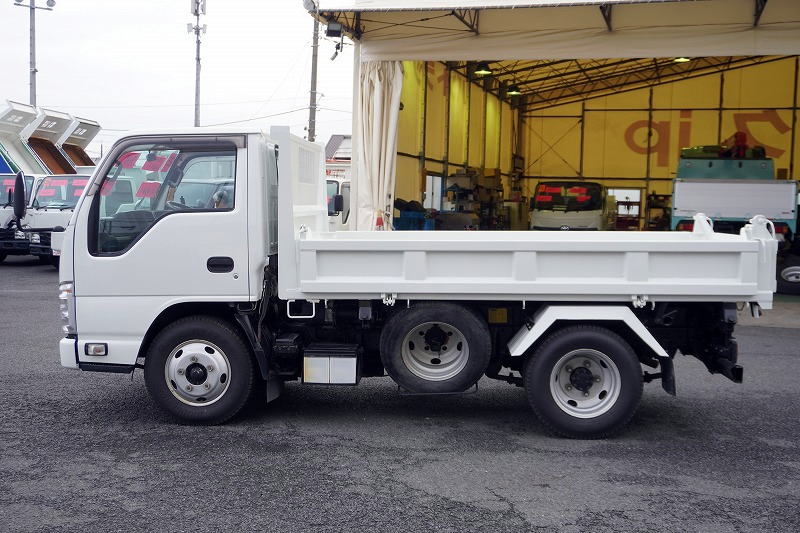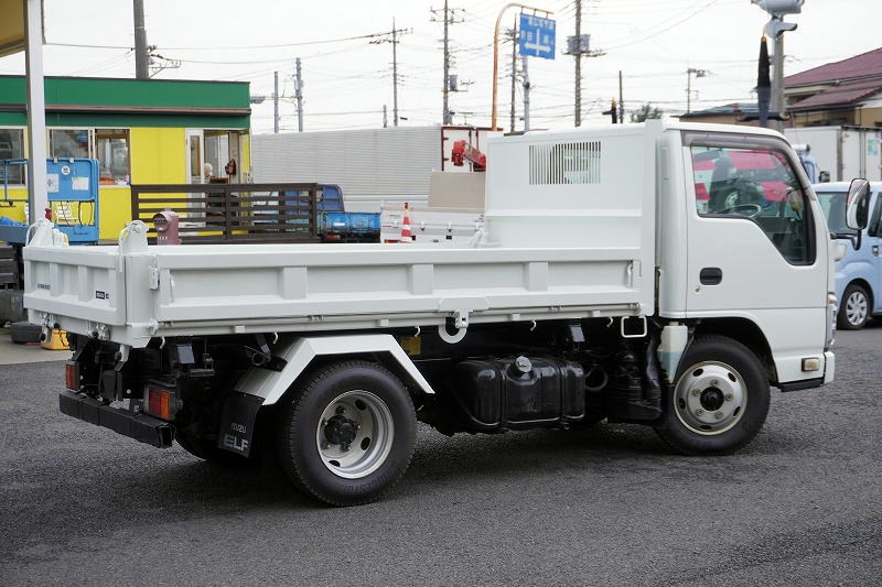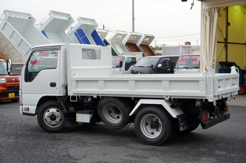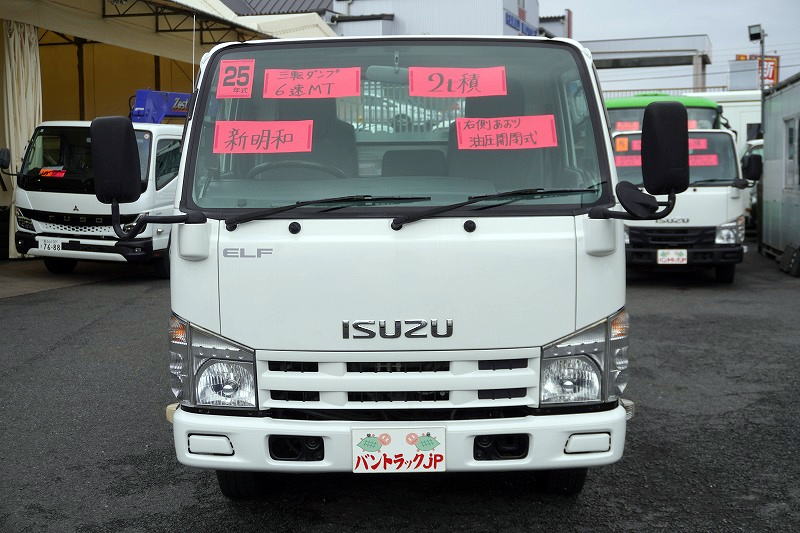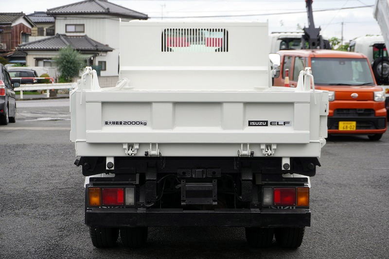 在庫No.K-0108 エルフ 強化 三転ダンプ 新明和製 積載2000kg 三方開 運転席側アオリ油圧開閉式 リアダンプピン 鳥居アングル補強 左電格ミラー 坂道発進補助 ETC 6速MT!