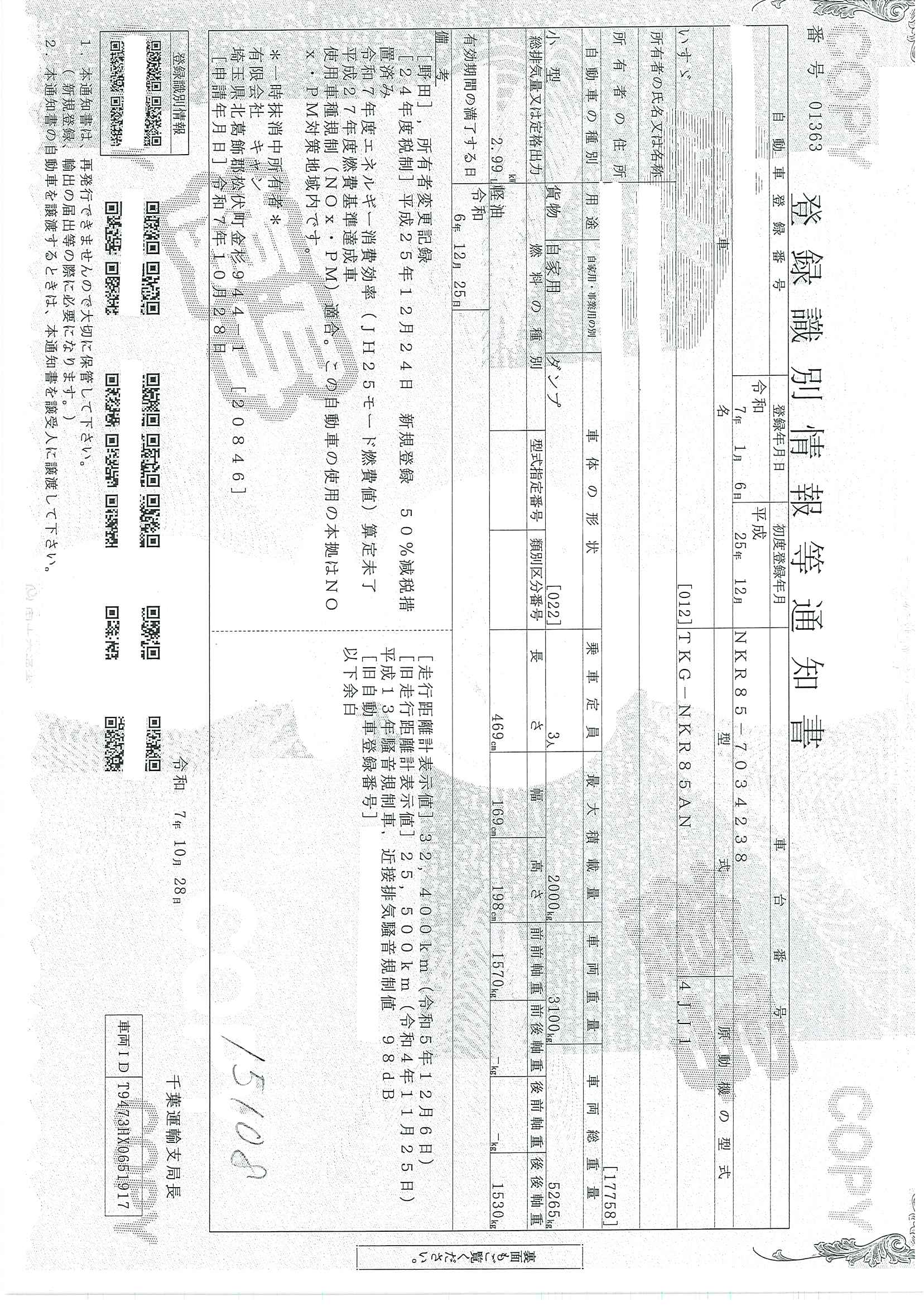 当店が把握できる車検証の表記より
