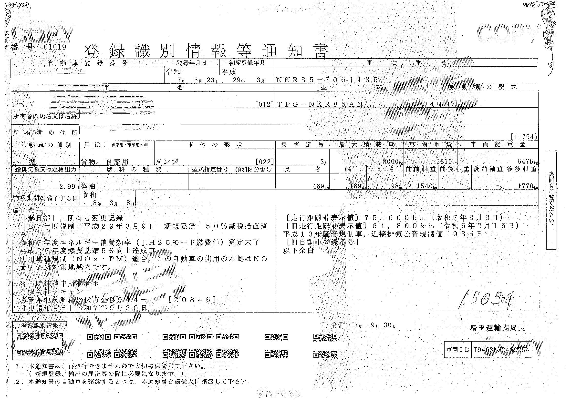 在庫No.K-0054 エルフ 「標準幅」 強化 ローダーダンプ 新明和製 三方開 積載3000kg 手動コボレーン スライド用ラジコン ダンプピン AT車!
