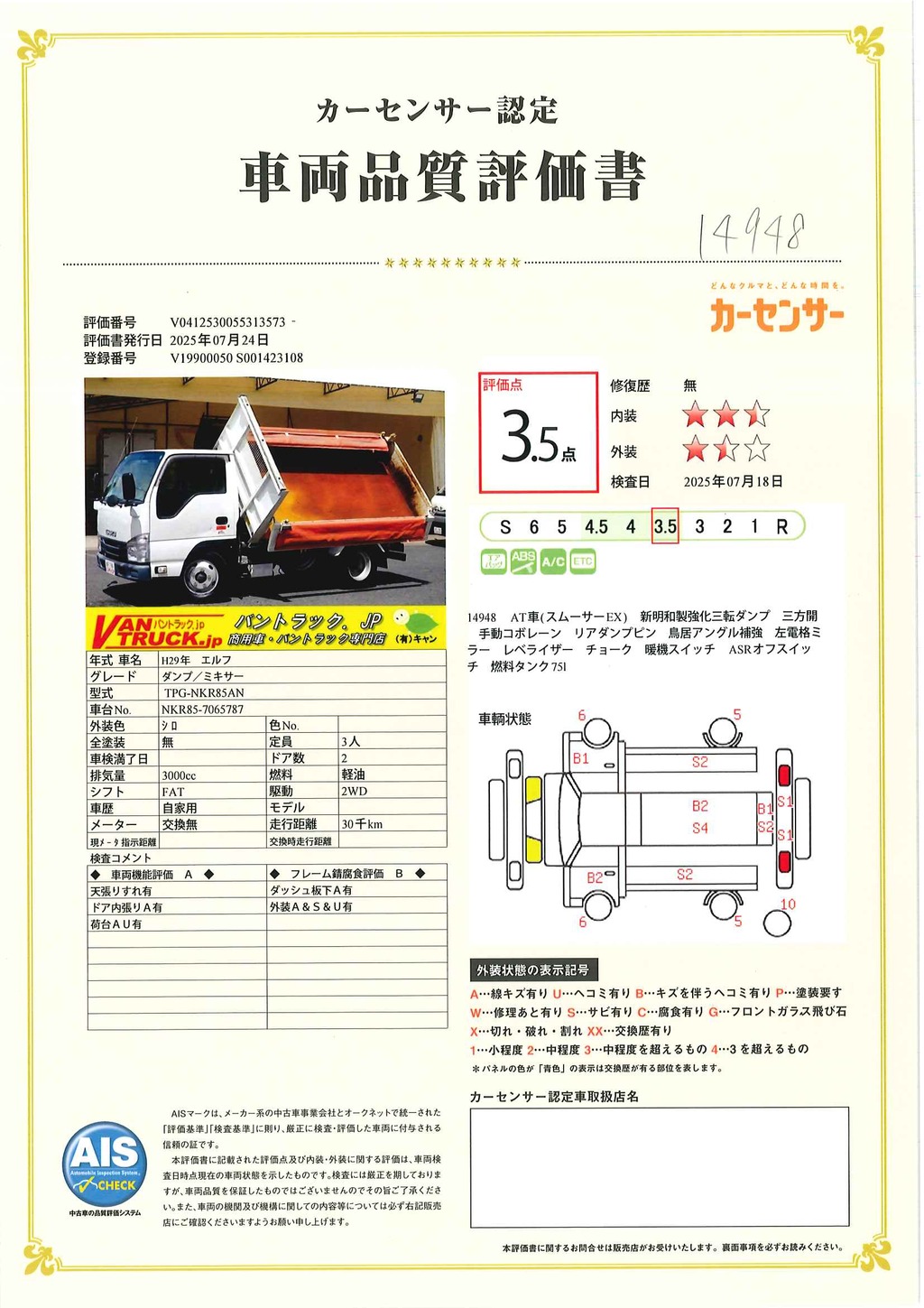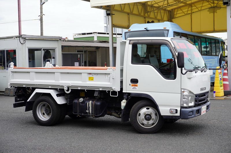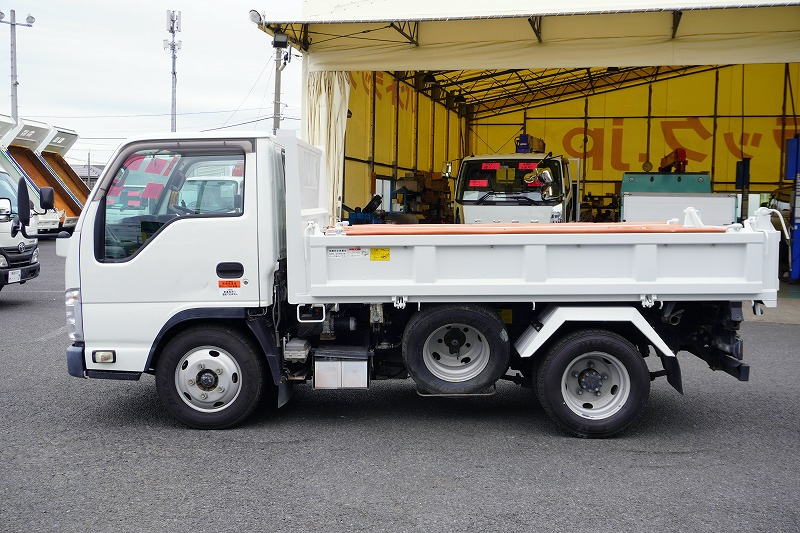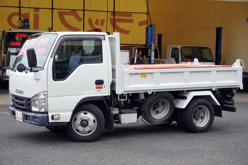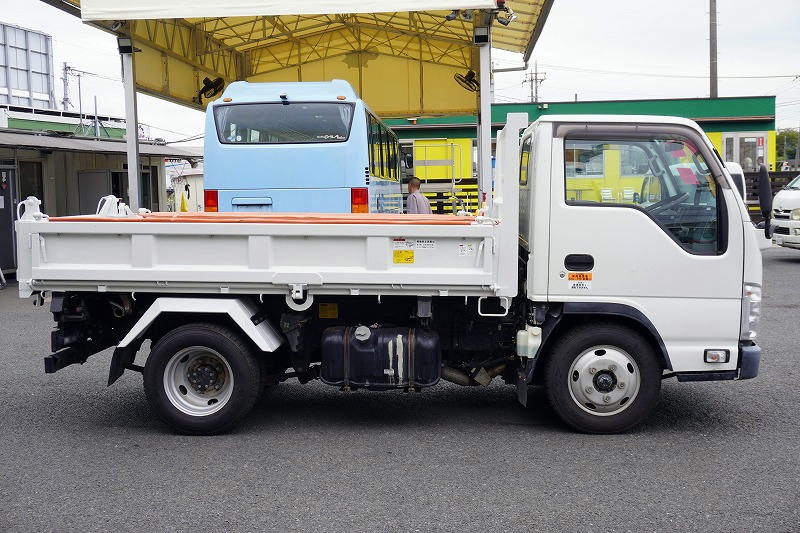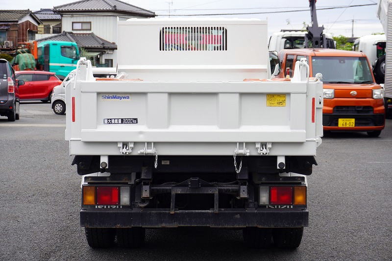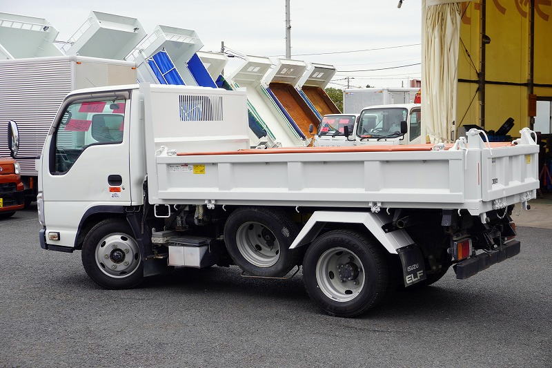 在庫No.C-0948 エルフ 強化 三転ダンプ 新明和製 積載3000kg 三方開 手動コボレーン 運転席側アオリ油圧開閉式 リアダンプピン 鳥居アングル補強 左電格ミラー ETC AT車!