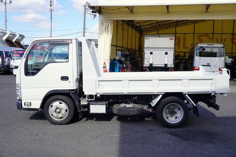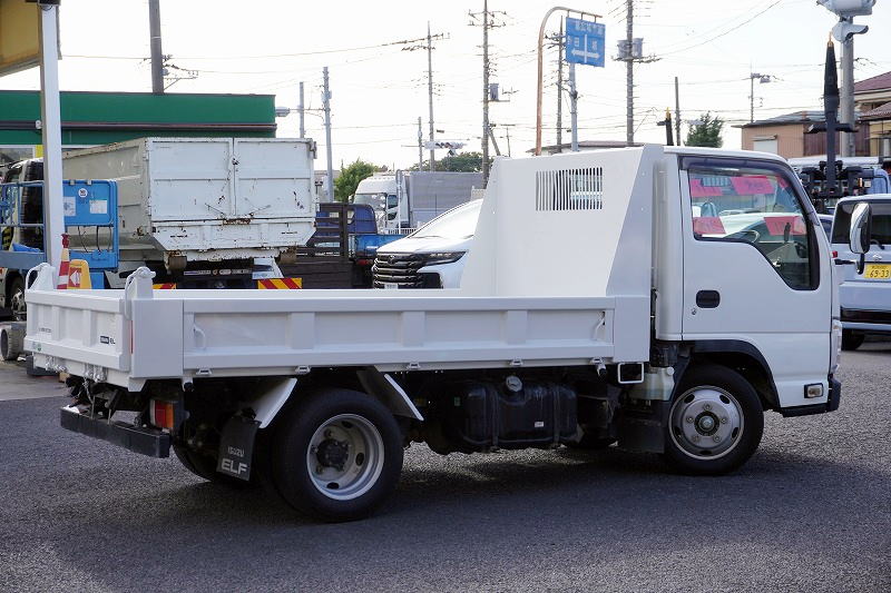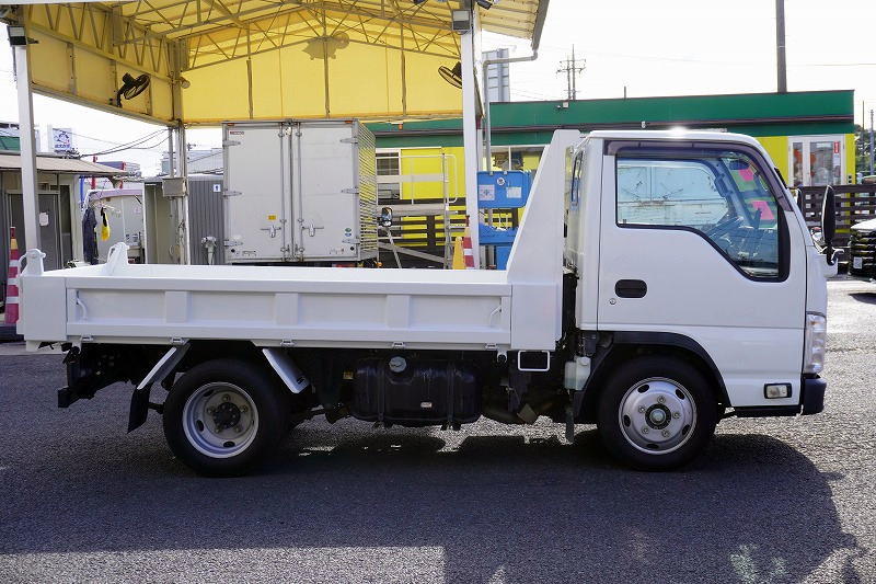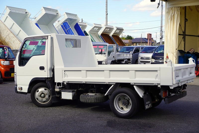 在庫No.K-0106 エルフ 強化ダンプ 極東製 積載2000kg 三方開 鳥居ツノ出し ダンプピン ETC 坂道発進補助 フルフラットロー 5速MT!