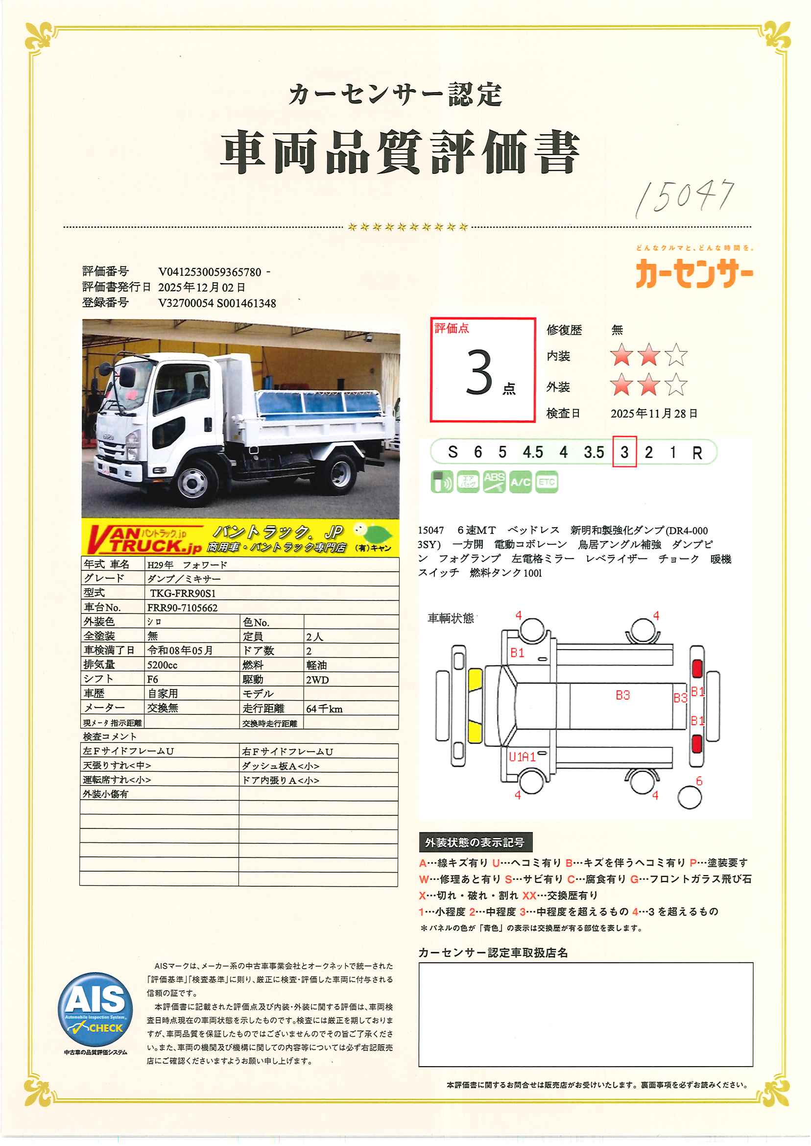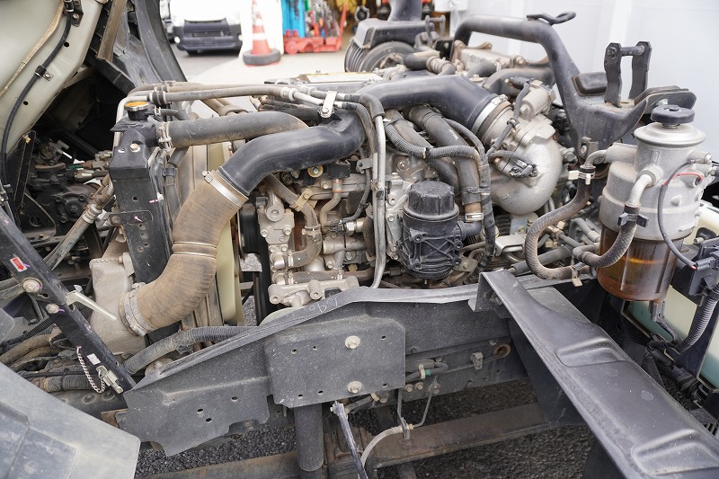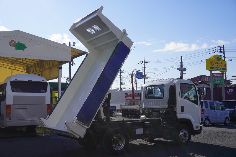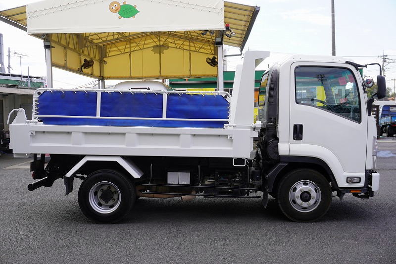 在庫No.K-0047 フォワード 4トン 「ベッドレス」 強化ダンプ 一方開 新明和製 積載3600kg 電動コボレーン 鳥居アングル補強 社外リアバンパー ダンプピン ETC 6速MT! 車検「R8年5月まで!」