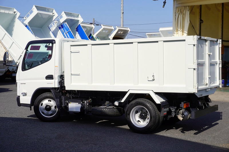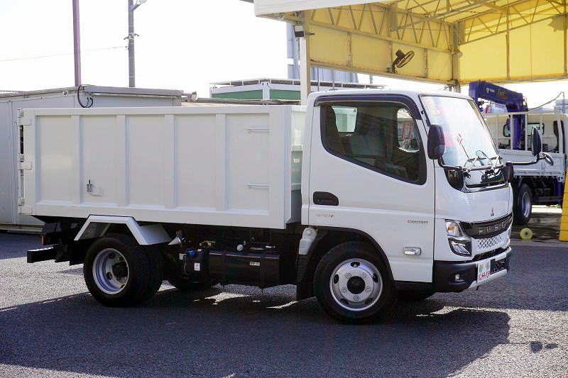 在庫No.K-0142 キャンター 強化 深ダンプ 「土砂禁止」 極東製 一方開 積載3000kg リア観音扉式 左電格ミラー ETC2.0 スマートキー LEDヘッドライト&フォグランプ 衝突軽減ブレーキ 車線逸脱警報 5速MT! 車検「R8年6月まで!」