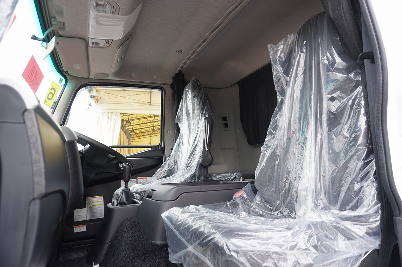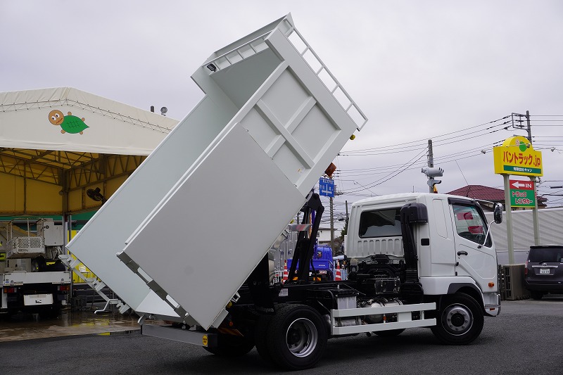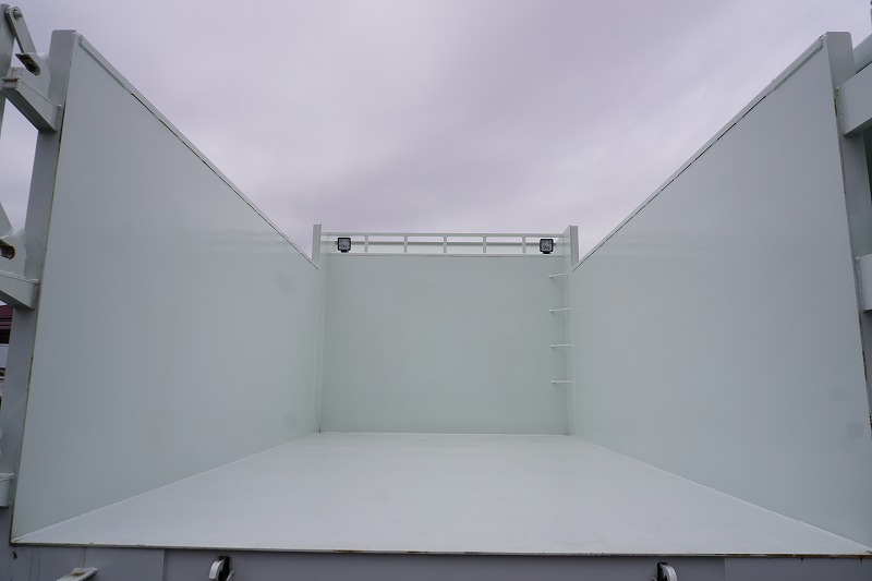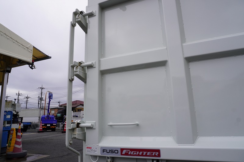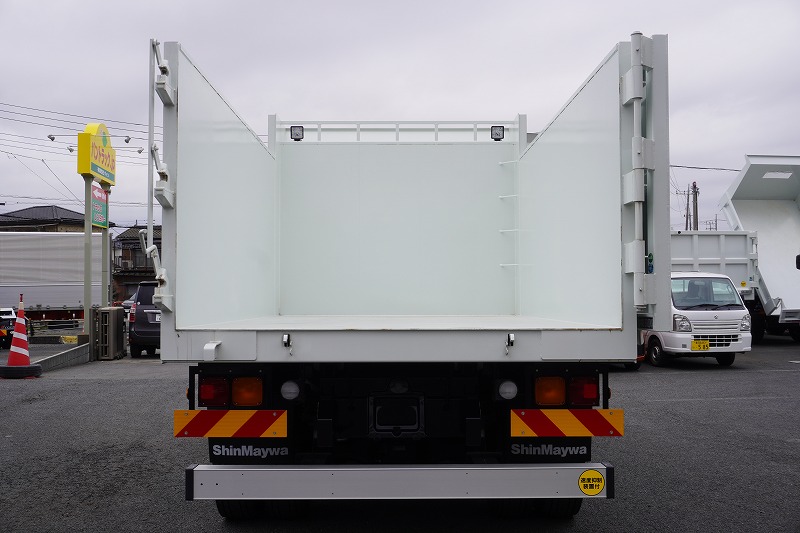 在庫No.K-0292 (未使用) ファイター 増トン 「ベッド付き 土砂禁止」 深ダンプ 新明和製 一方開 積載6600kg リア片開き扉 鳥居シートデッキ&ラダー 坂道発進補助 ETC2.0 衝突軽減ブレーキ 車線逸脱警報 オートエアコン メッキパーツ 6速MT!