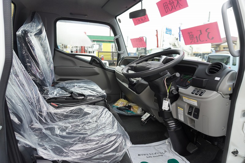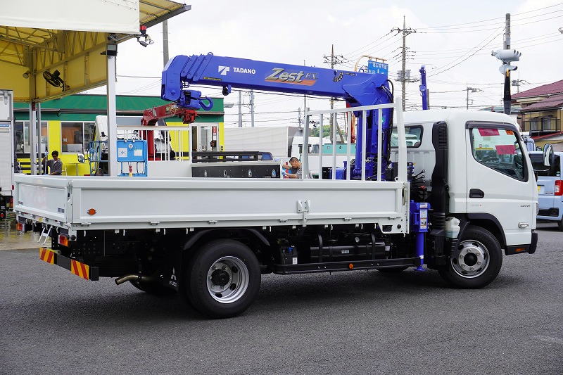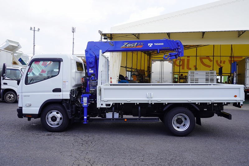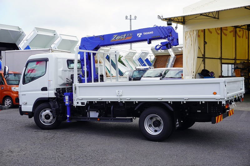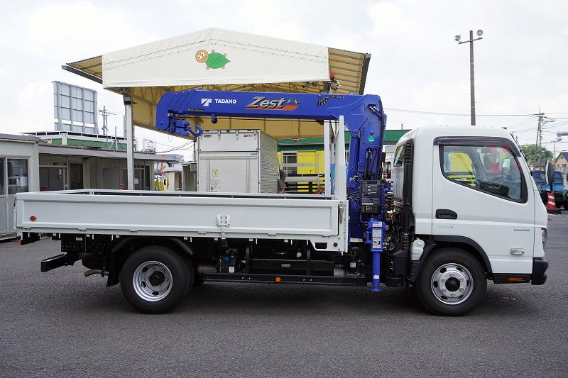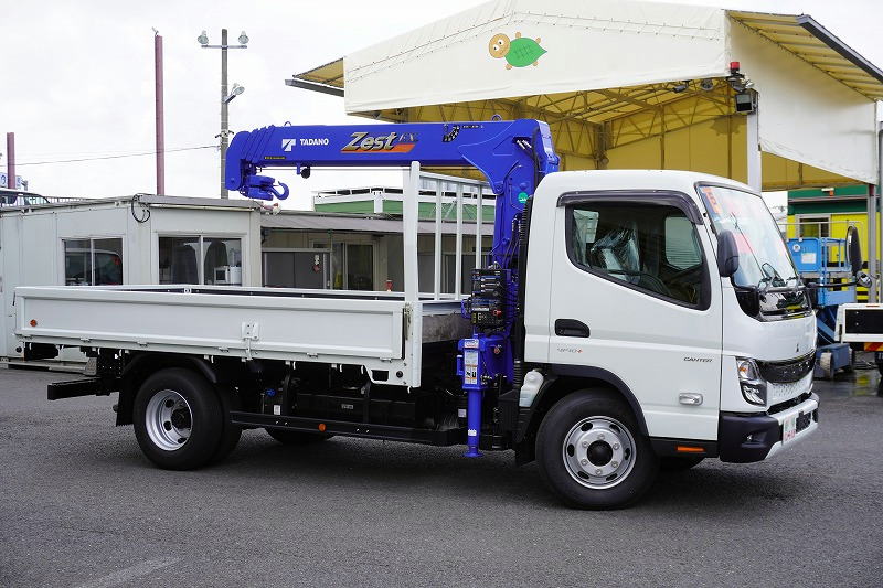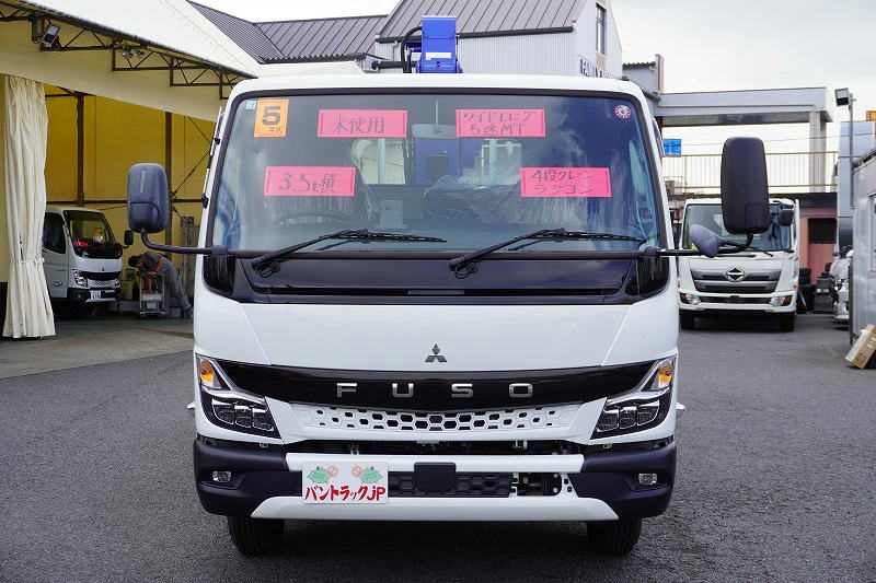 在庫No.C-0873 (未使用) キャンター 「ワイドロング」 4段クレーン 積載3500kg タダノ製 ラジコン フックイン 2.63t吊 セイコーラック LEDヘッドライト&LEDフォグランプ 左電格ミラー 坂道発進補助 スマートキー 衝突軽減ブレーキ 車線逸脱警報 5速MT!