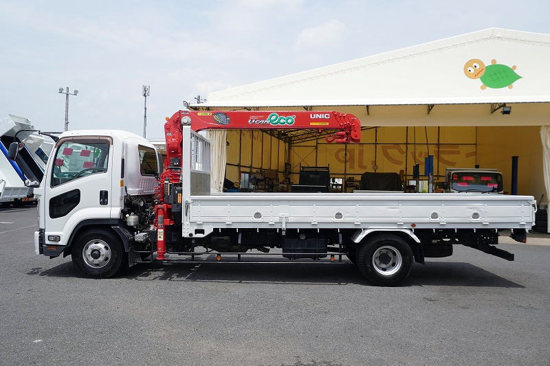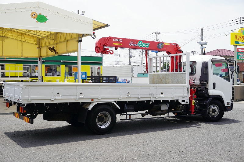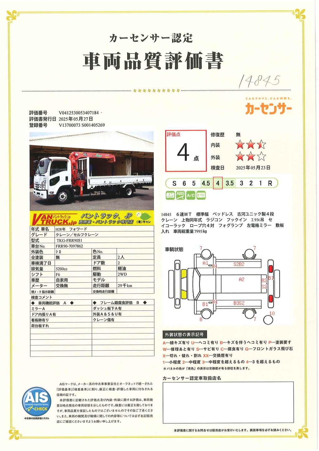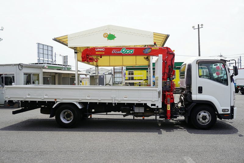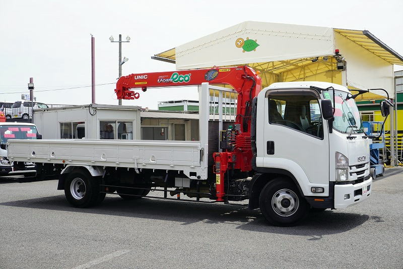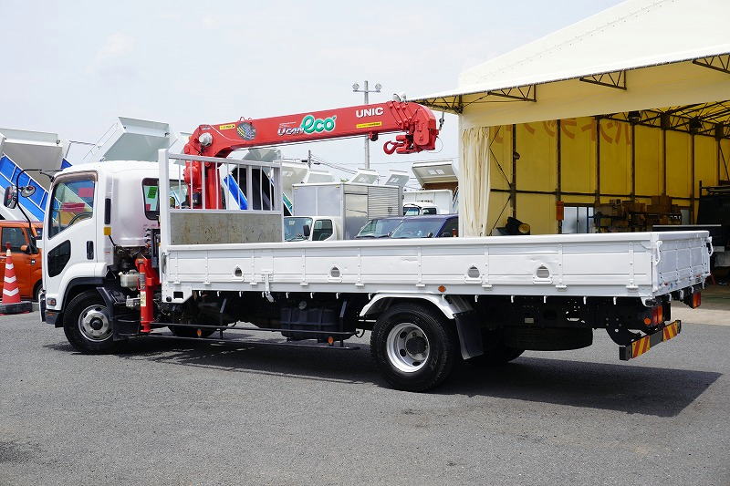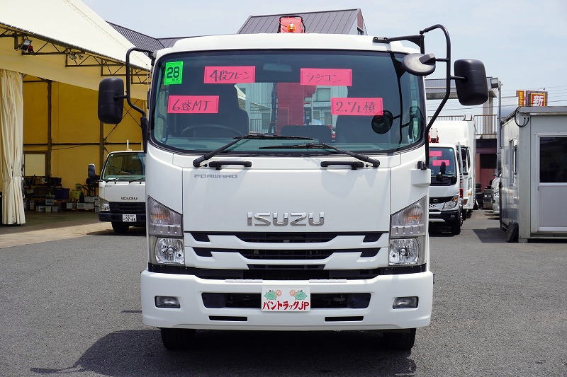 在庫No.C-0845 フォワード 4トン 「ベッドレス」 4段クレーン 積載2700kg 古河ユニック製 5.4m長 ラジコン フックイン 2.93t吊 セイコーラック ロープ穴4対 ETC 6速MT!低走行!