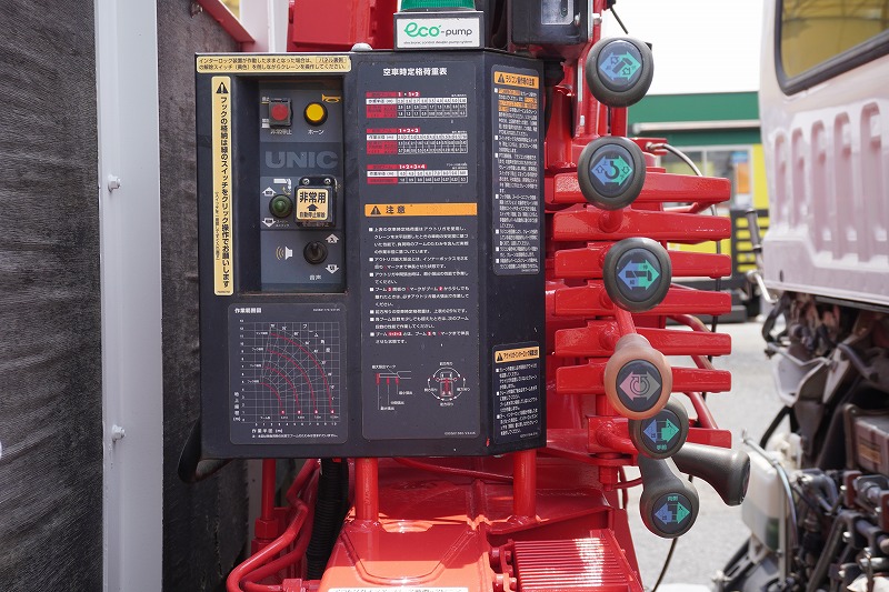 4t 寝台無し 4段ユニック 2.7トン積 5400mm長 リモコン フック格納 2.9トン吊 EZラック フック穴 |
