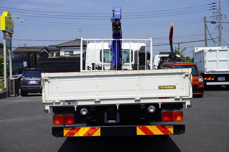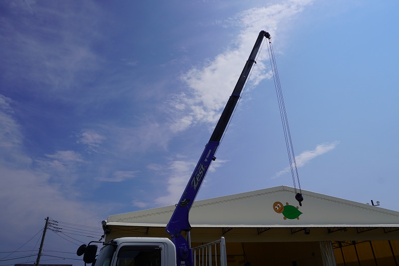 4t 標準巾 寝台無し 4段ブーム 2.65トン積 リモコン フック格納 2.9トン吊 フック穴 内フック 5400mm長 |